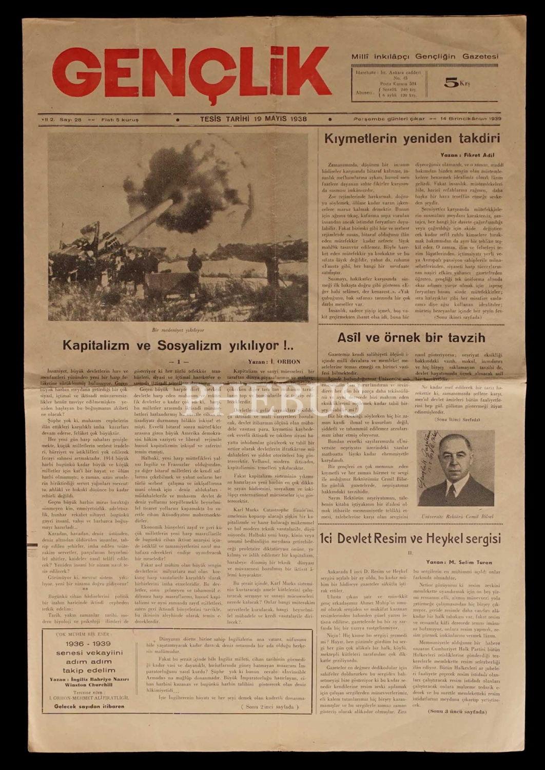 Milli inkılapçı GENÇLİK gazetesinin 1938 yılında basılan 28. sayısı, 35x50 cm...