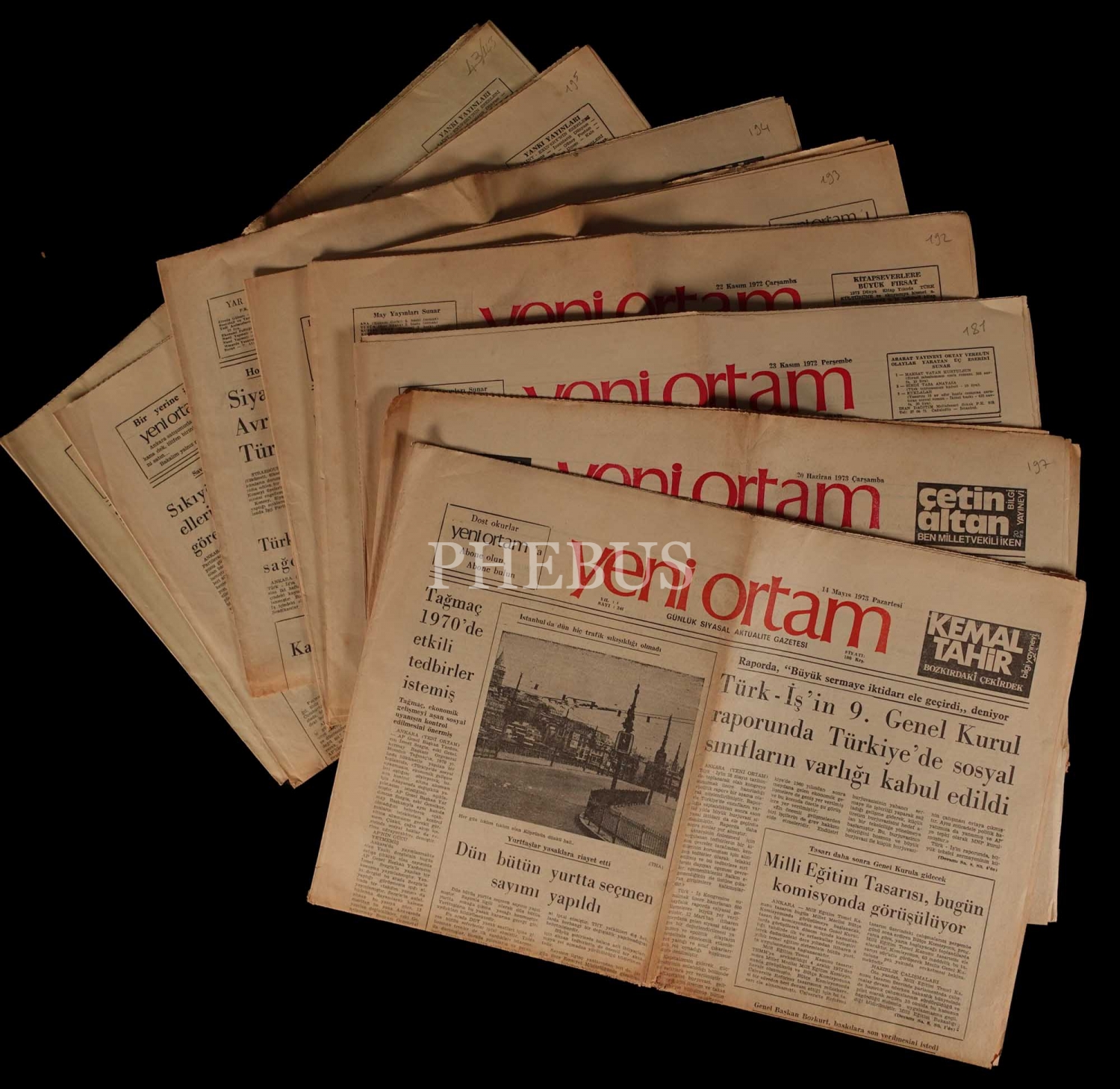 1972-73 yılları aralığında basılan 7 parça YENİ ORTAM gazetesi, 43x60 cm...