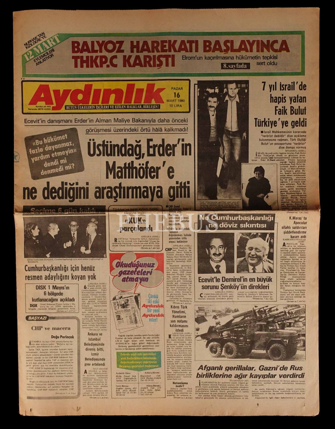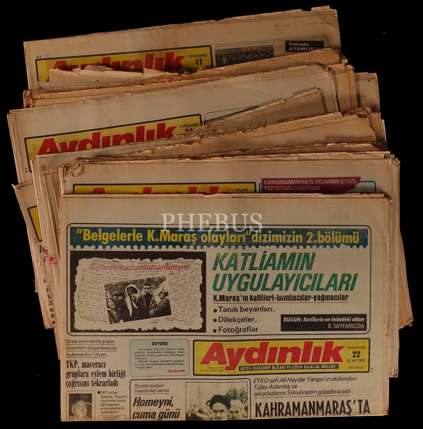 1978-79 yıllarında basılan sosyalist çizgideki AYDINLIK gazetesi, 26 parça, 43x60 cm...