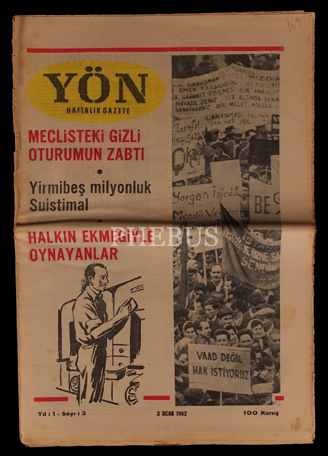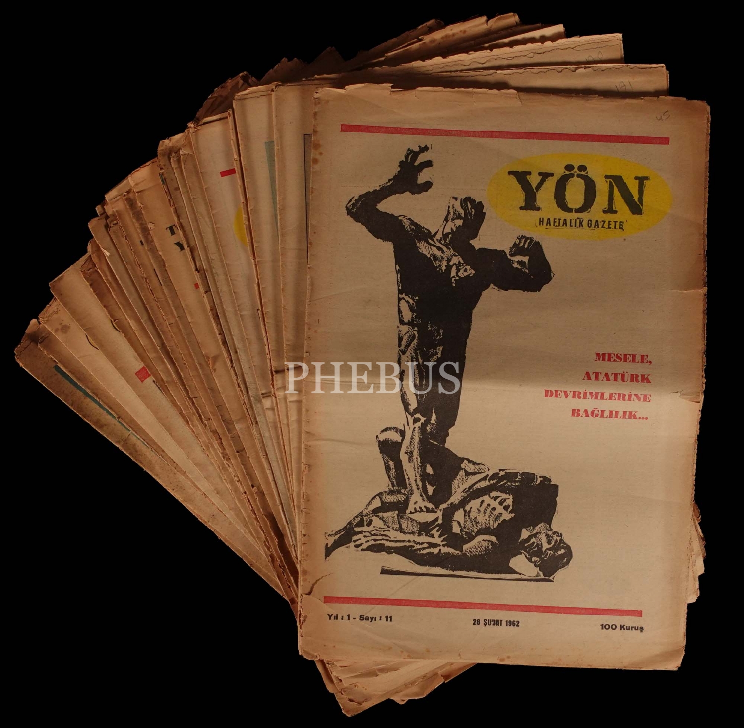 1966-65 tarihli Sol çizgide haftalık basılan YÖN gazetesi, 32 parça, 32x44 cm...