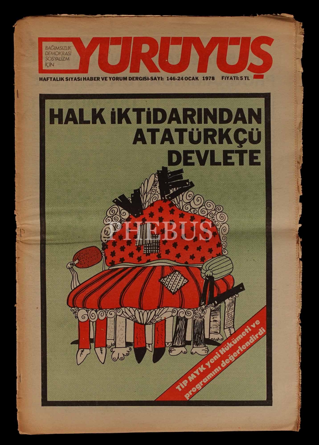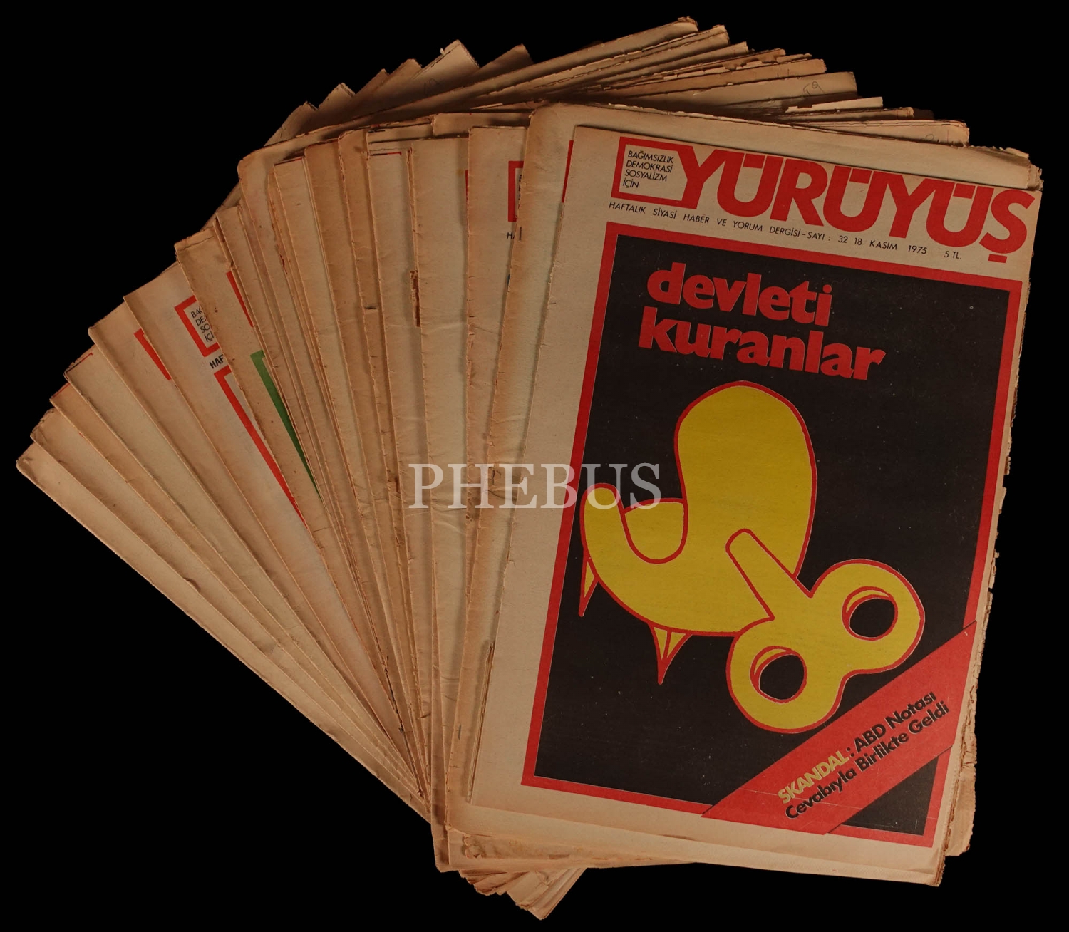 1975-79 tarihli Sol çizgide haftalık basılan YÜRÜYÜŞ gazetesi, 27 parça, 28x40 cm...