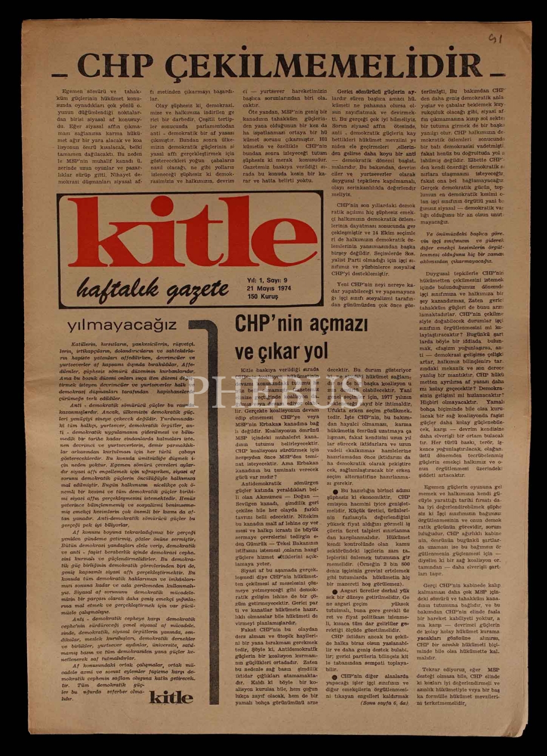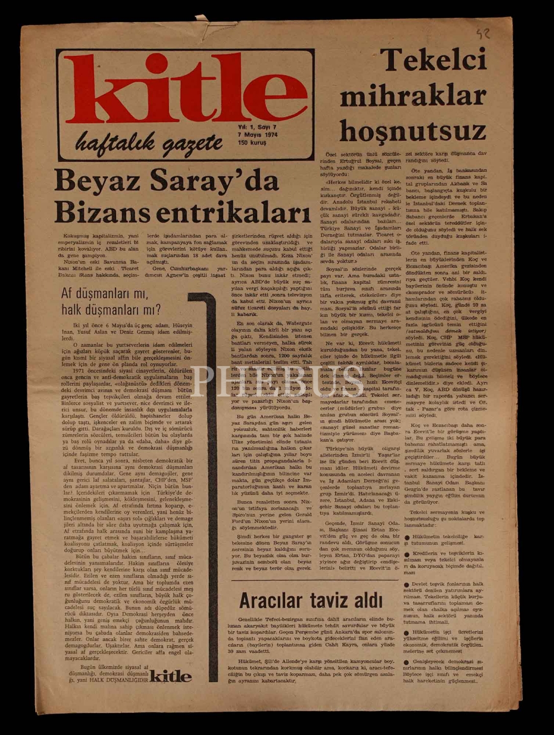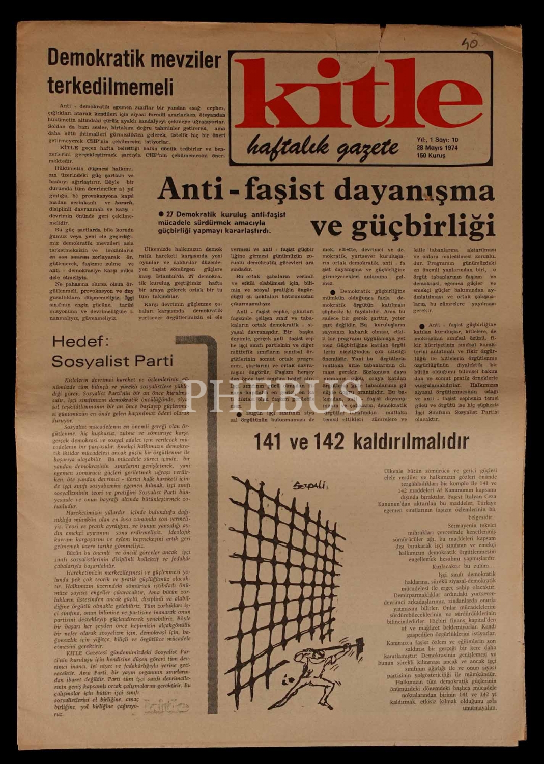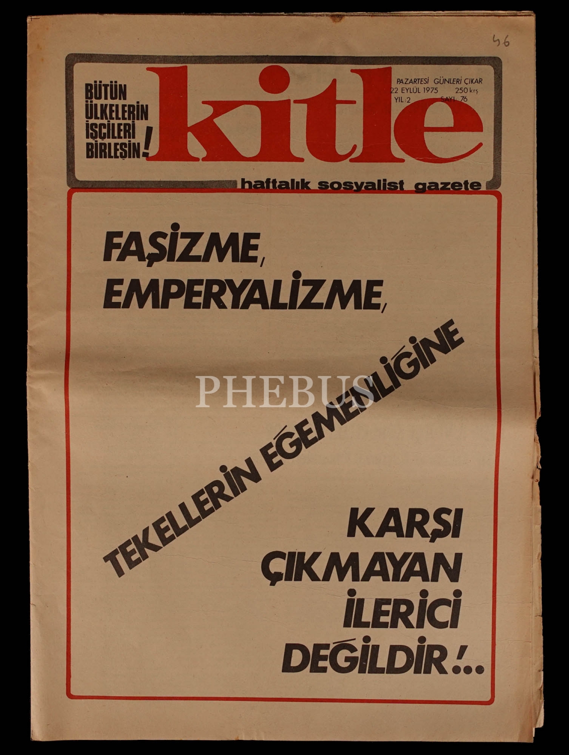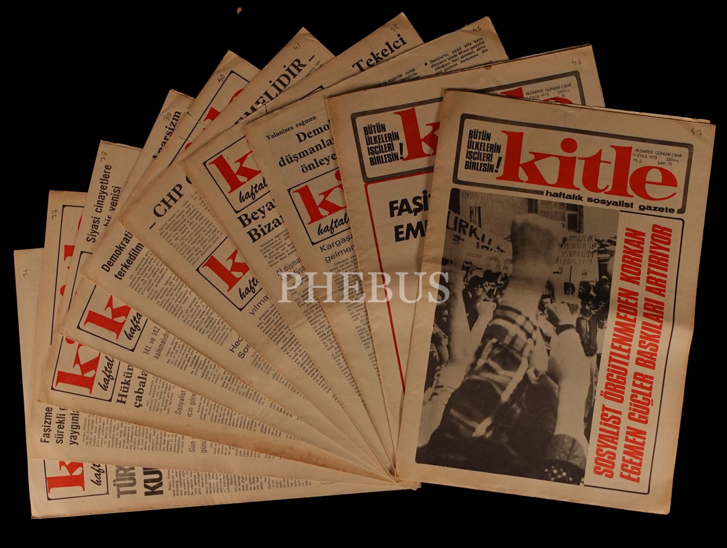1975-75 tarihli Sol çizgide haftalık basılan KİTLE gazetesi, 10 parça, 28x40 cm...