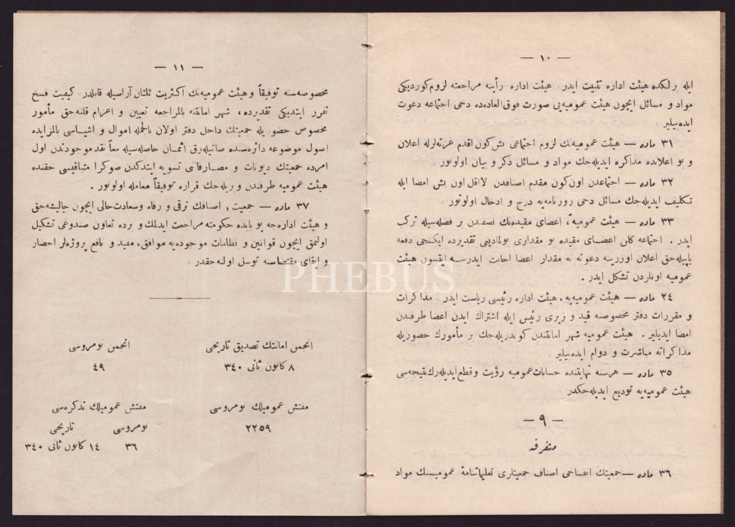 DERSAADET VE BELED-İ SELASE TÜTÜNCÜLER ESNAFI CEMİYETİ, 1340, Kağıtçılık ve Matbaacılık Anonim Şirketi, 11 sayfa, 13x19 cm...