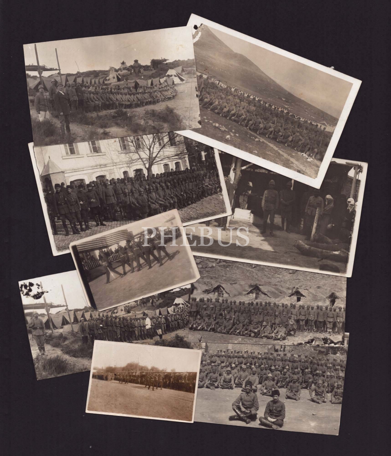Birinci Cihan Harbi yıllarında Osmanlı askerleri, 9 adet fotoğraf, muhtelif boyutlarda...