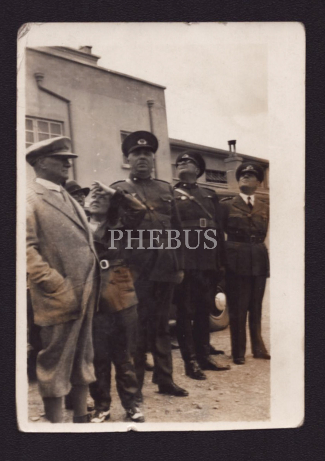 Mustafa Kemal Atatürk, Sabiha Gökçen ve Fahrettin Altay´ın uçak manevralarını seyrederken alınmış hatıra fotoğrafı, Eskişehir, 1936, 6x9 cm...