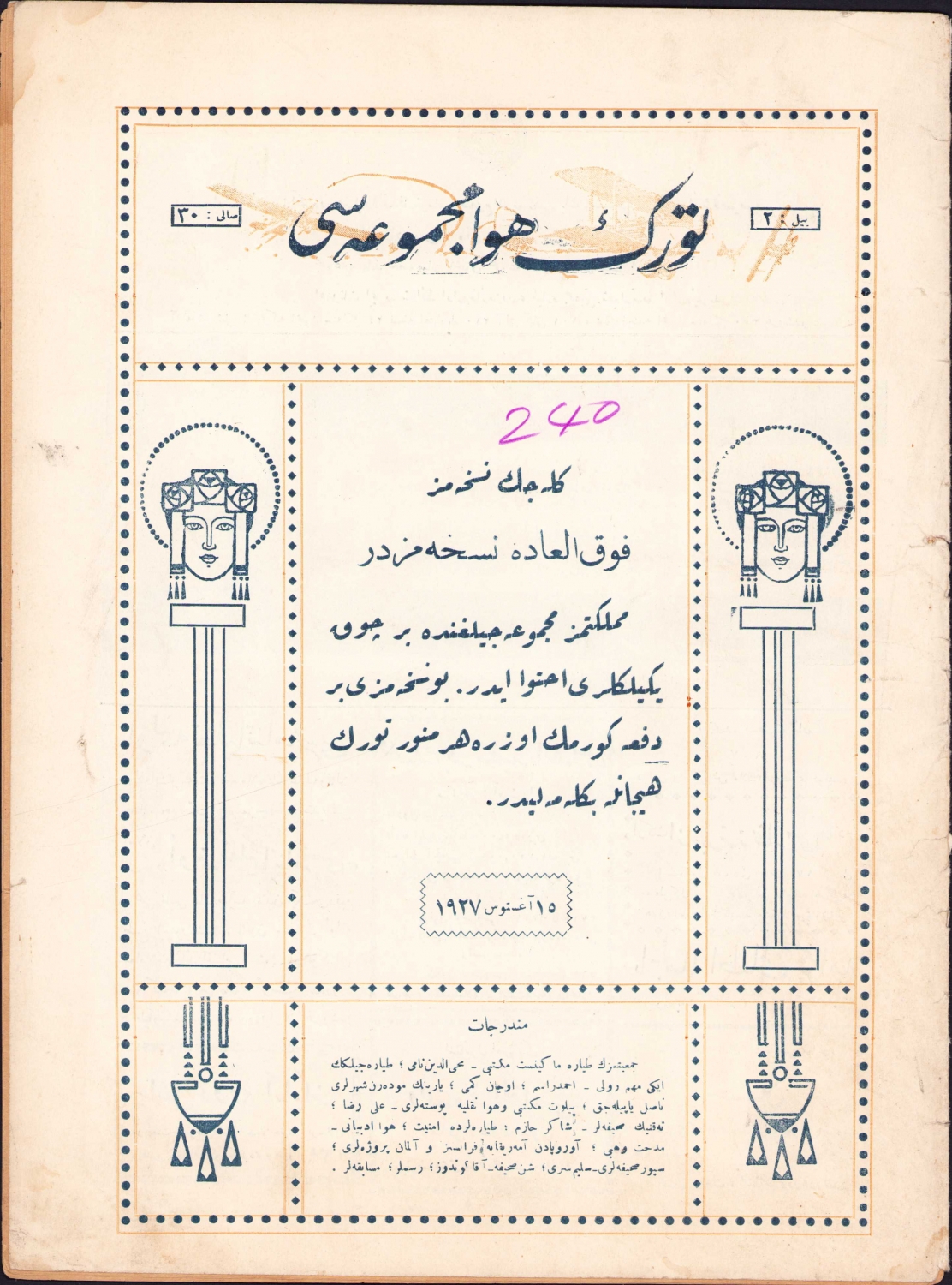 Osmanlıca Türk Hava Mecmuası, 1927, resimli, sayfalardan biri haliyle, resmli, 24x33 cm
