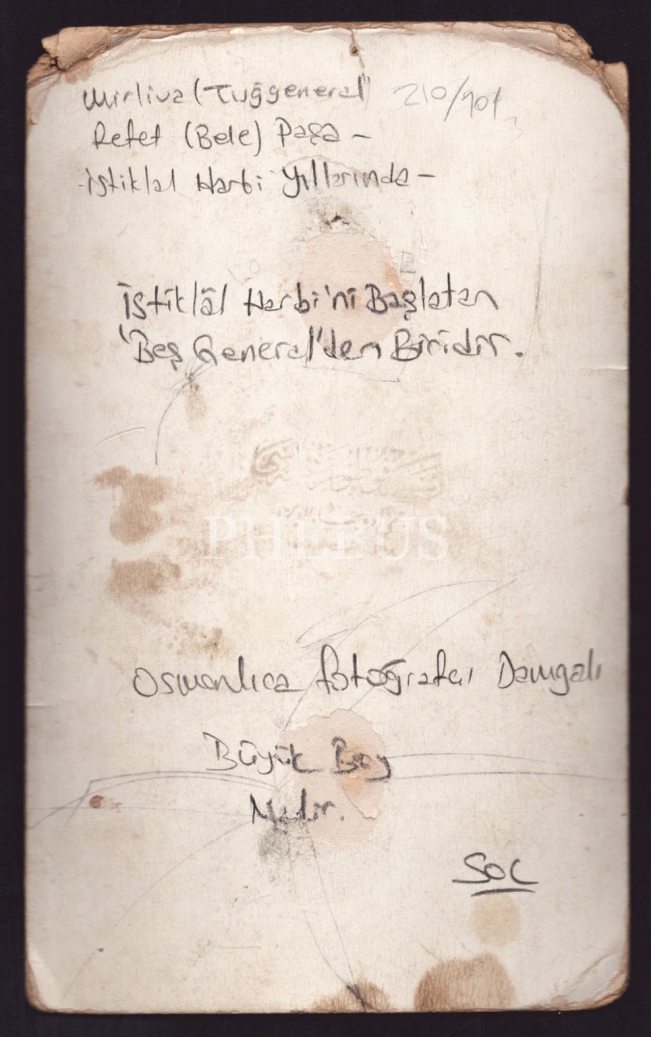 Refet Bele´nin, göğsünde İstiklal Madalyası ve üniformasıyla aldırdığı stüdyo hatıra fotoğrafı, Resne Fotoğrafhanesi damgalı, 13x21 cm...