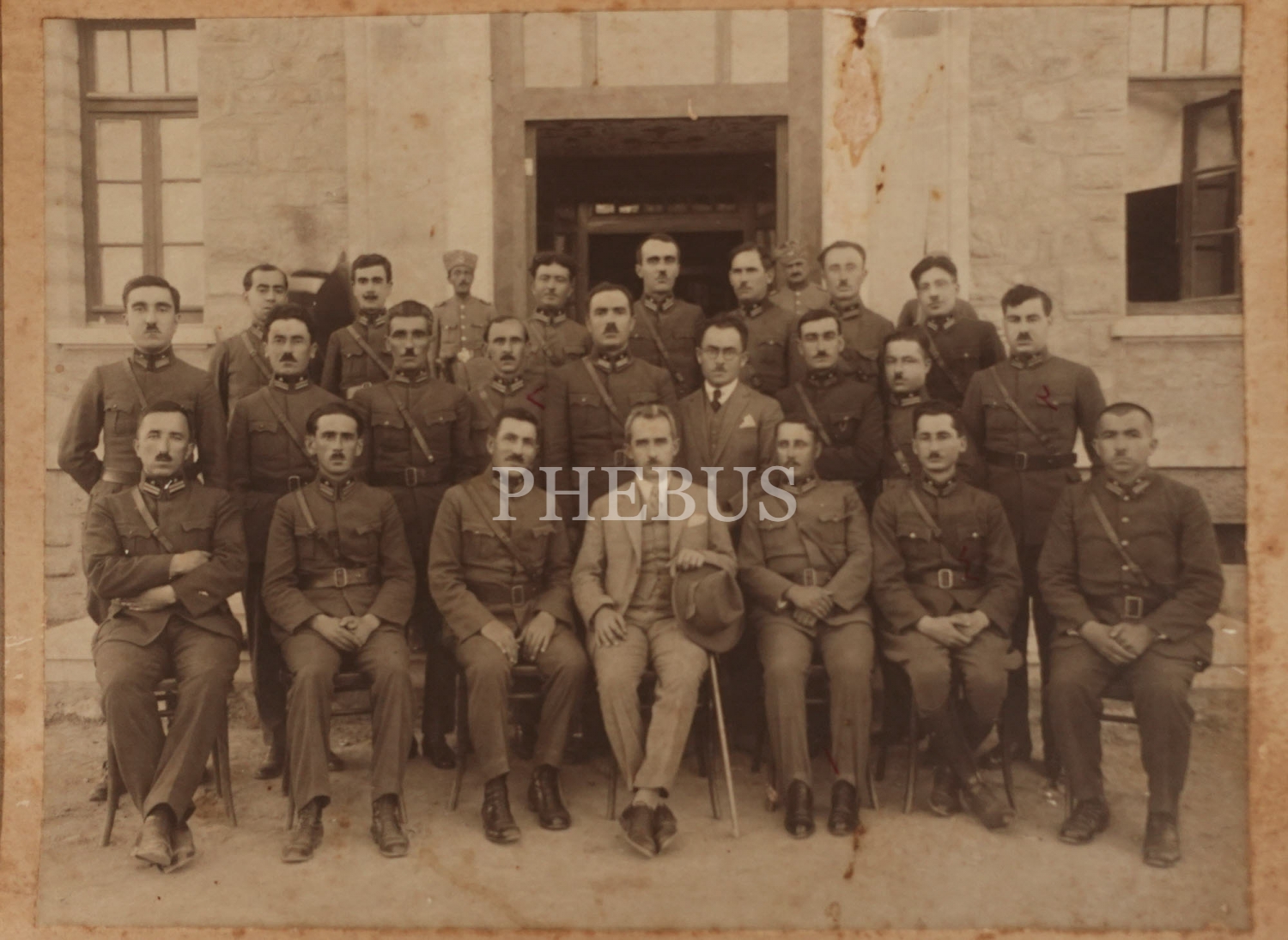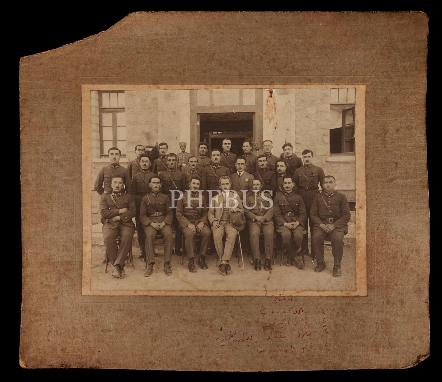 İsmet İnönü ve subayların hatıra fotoğrafı, 34x29 cm...