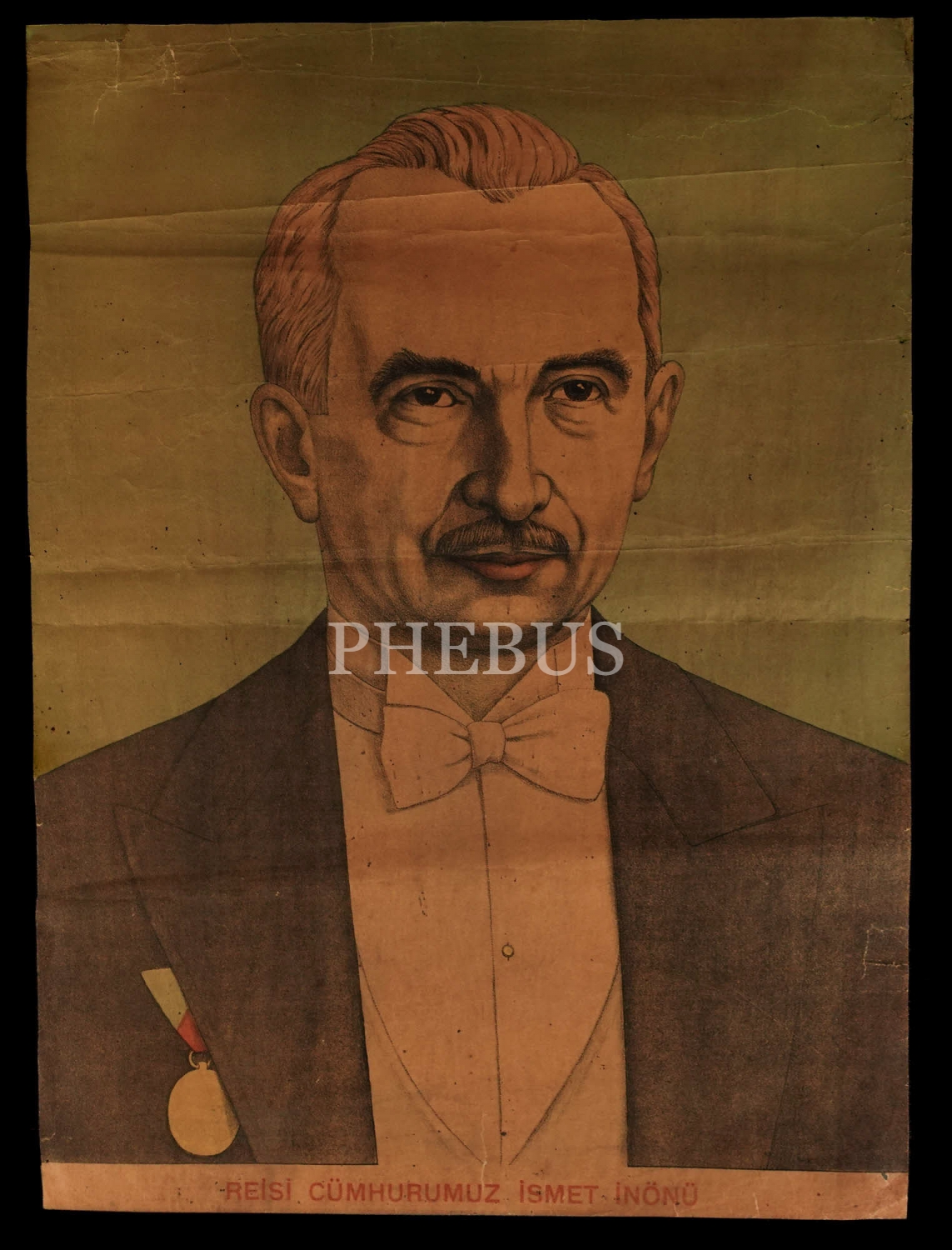 "Reis-i Cümhurumuz İsmet İnönü" başlıklı İsmet İnönü afişi, 39x52 cm...