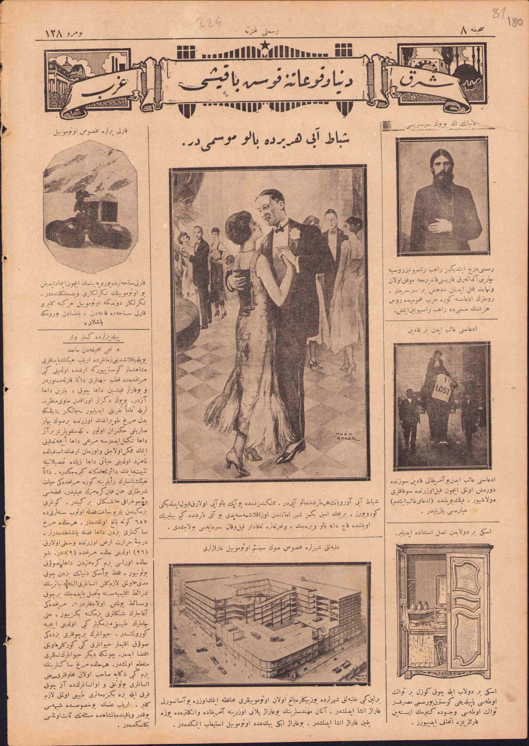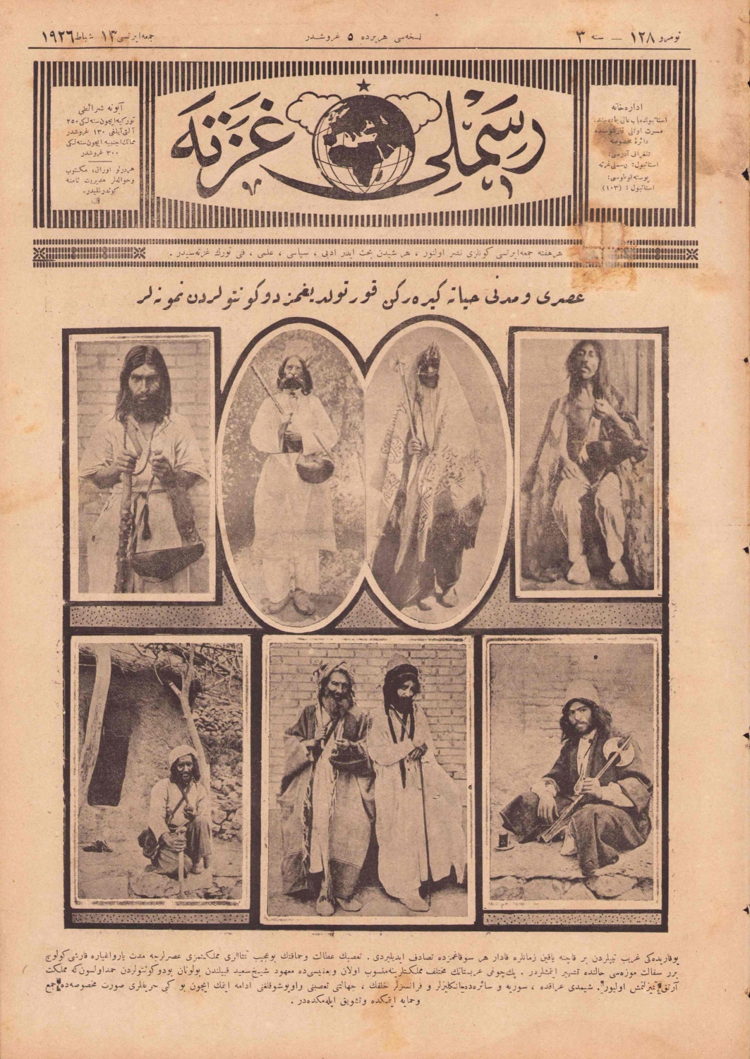 Osmanlıca Resimli Gazete, 1926, kapak ' Asrı ve medeni hayata girerken kurtulduğumuz döküntülerden numuneler", 8 sayfa, 26x39 cm