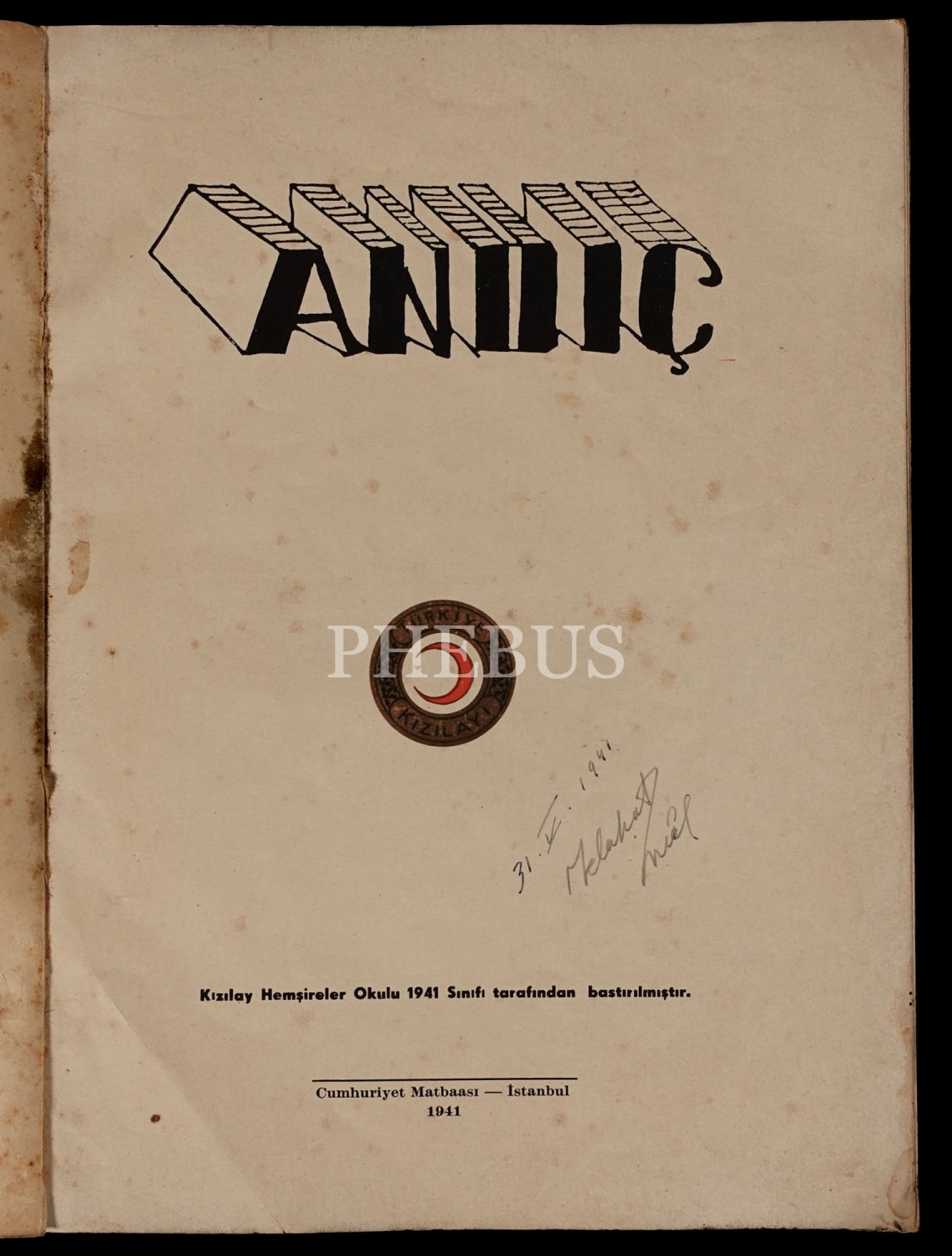 Kızılay Hemşireler Okulu 1941 sınıfı tarafından bastırılan ANDIÇ, 1941, Cumhuriyet Matbaası, 45 sayfa, 22x29 cm...