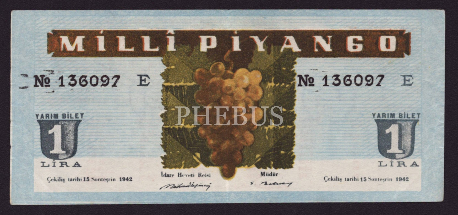 Milli Piyango bileti, 1942, yarım bilet, 16x8 cm...