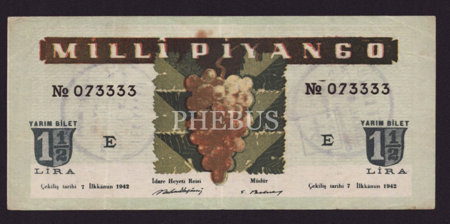 Milli Piyango bileti, 1942, yarım bilet, 16x8 cm...
