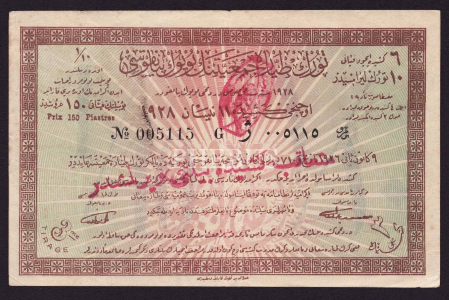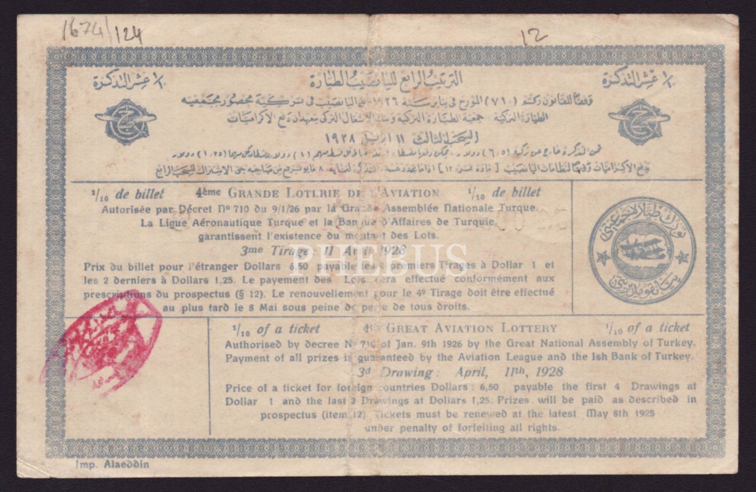 Büyük Tayyare Piyangosu bileti, 1928, 17x12 cm...