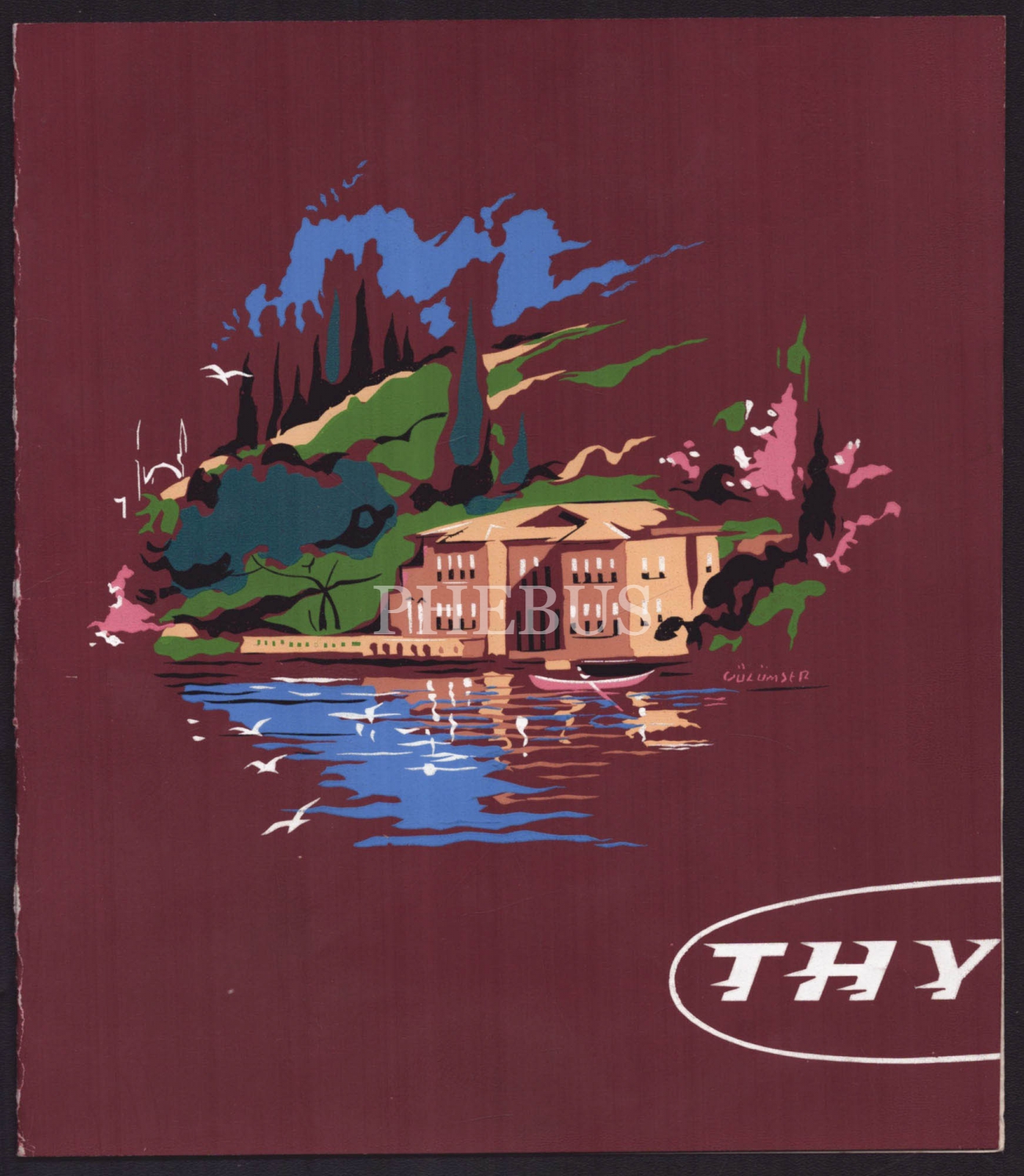 Gülümser Aral imzalı, Türk Hava Yolları reklamlı kartonet, serigrafi baskı, 38x22 cm...