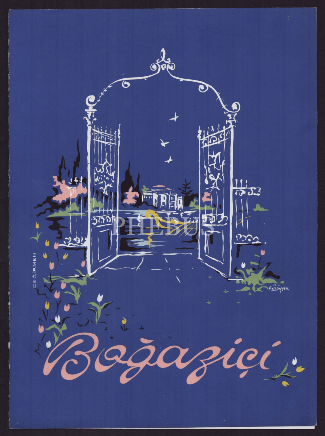 Gülümser Aral imzalı, Türkiye Turizm Bankası Turistik Tesisleri için "Boğaziçi" başlıklı tasarım, serigrafi baskı, 45x31 cm...