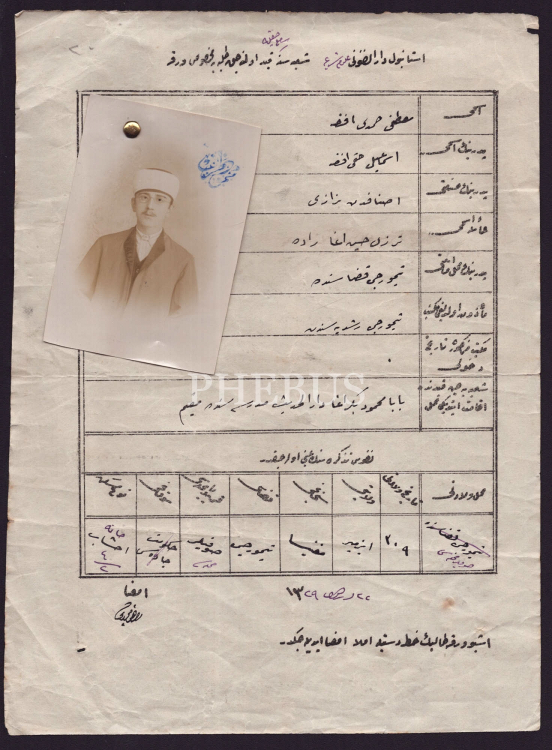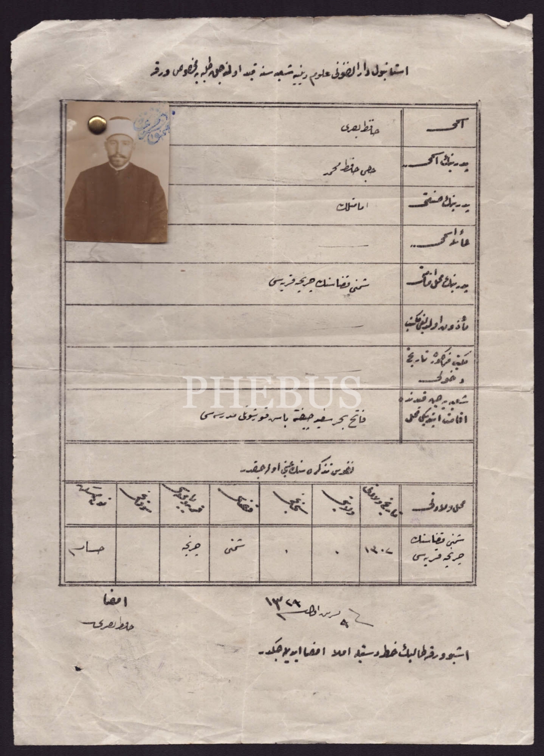 Hafız Basri Efendi ve Mustafa Hamdi Efendi isimli talebelerin, İstanbul Darülfünun Ulum-ı Diniyye şubesine kayıt evrakları, 2 adet, 21x28 cm...