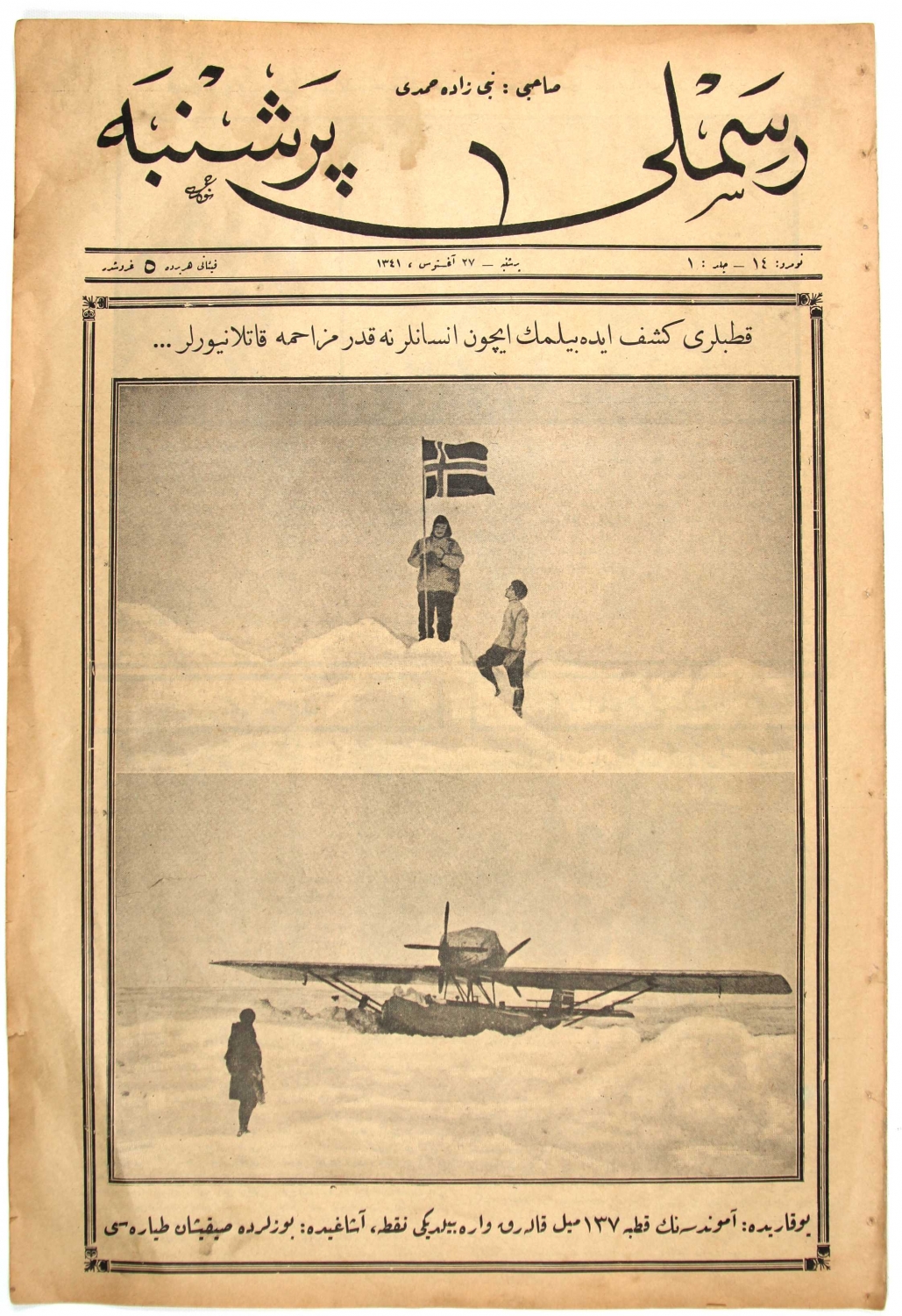 Osmanlıca Resimli Perşembe, 1341, kapak "Kutupları Keşif Edebeilmek İçin İnsanlar Ne Kadar Müzaheme Katlandırlar", 6 sayfa, 30x45 cm