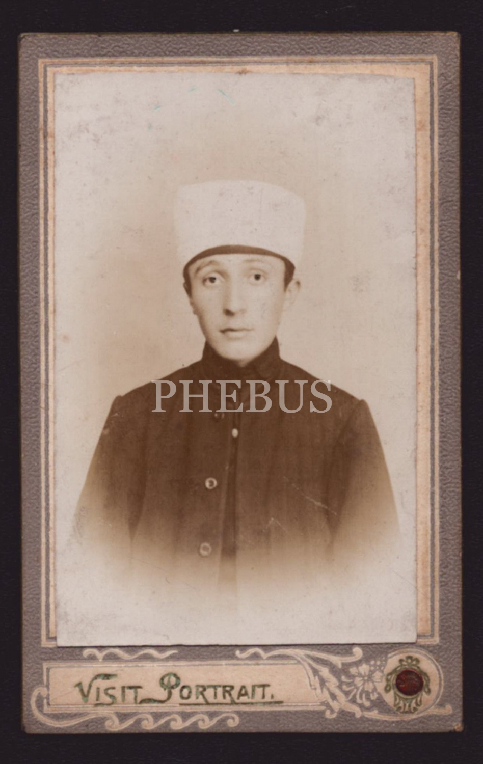 Sarıklı ve cübbeli bir beyefendinin stüdyo hatıra fotoğrafı, 7x11 cm...