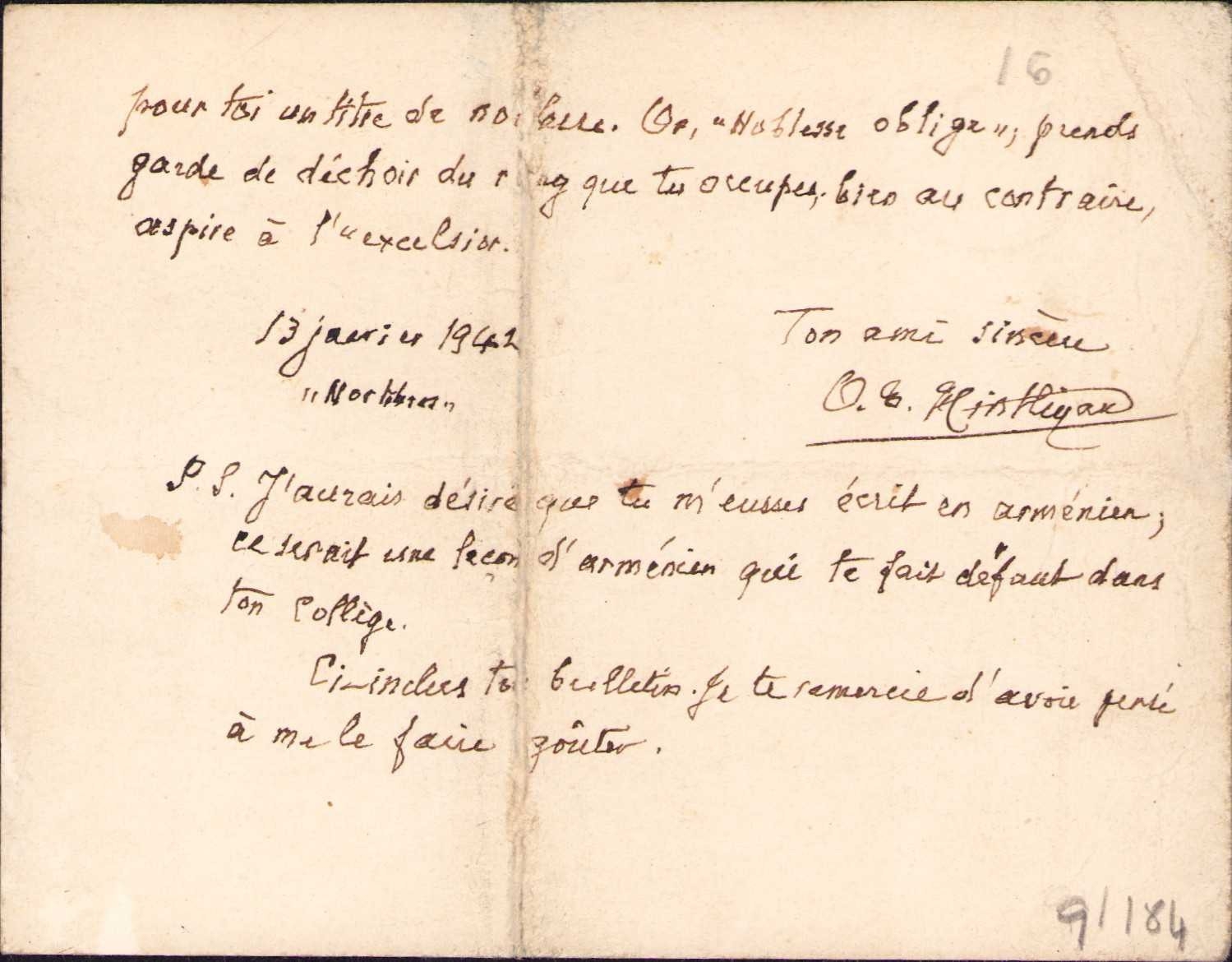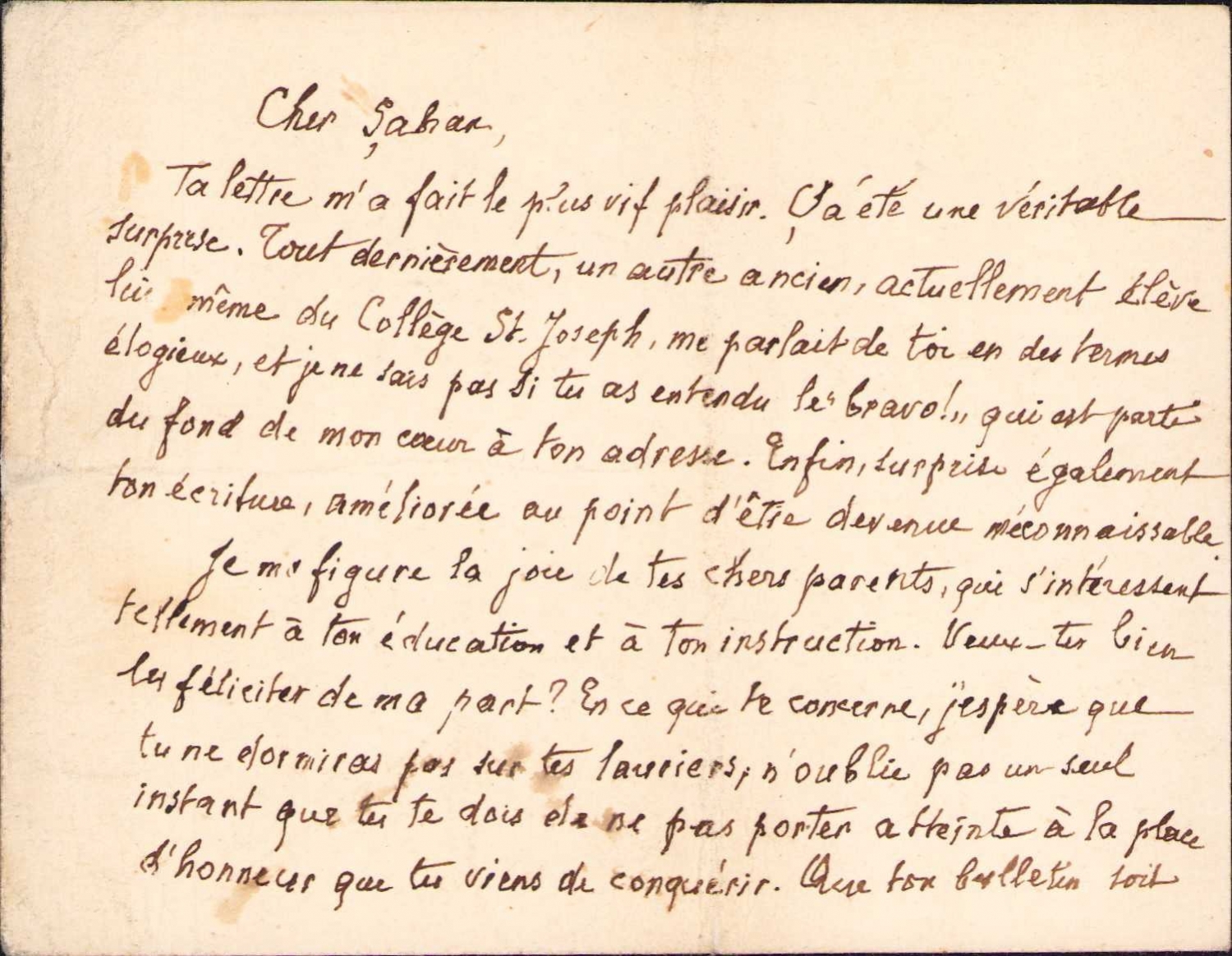St. Joseph Lisesine ait teşekkür, Fransızca, 1941 tarihli, 12x10 cm