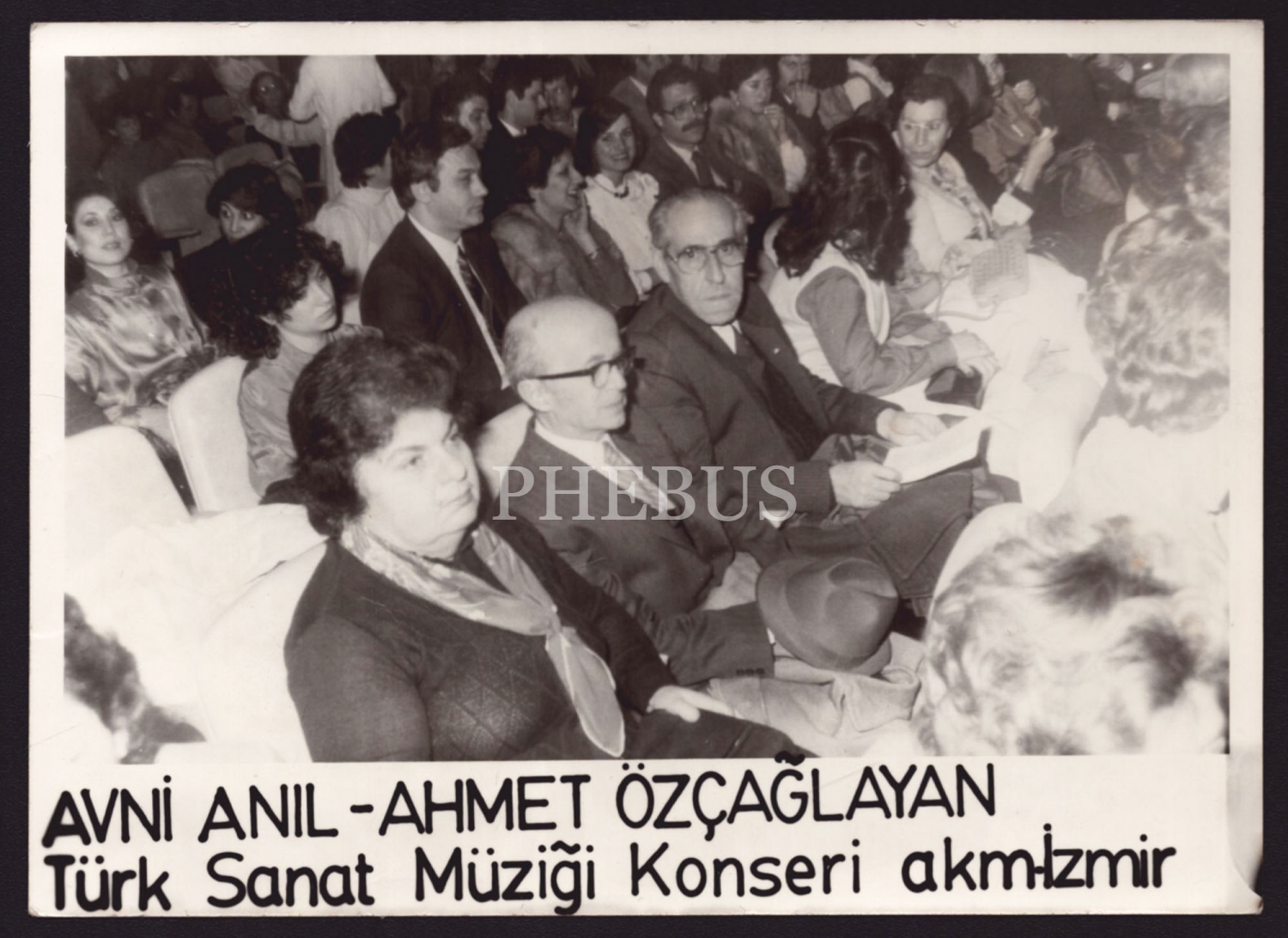 Türk sanat müziği bestekarları Avni Anıl ve Ahmet Özçağlayan´ın İzmir Atatürk Kültür Merkezi´nde katıldıkları Türk sanat müziği konserinde alınmış fotoğrafları, 18x13 cm...