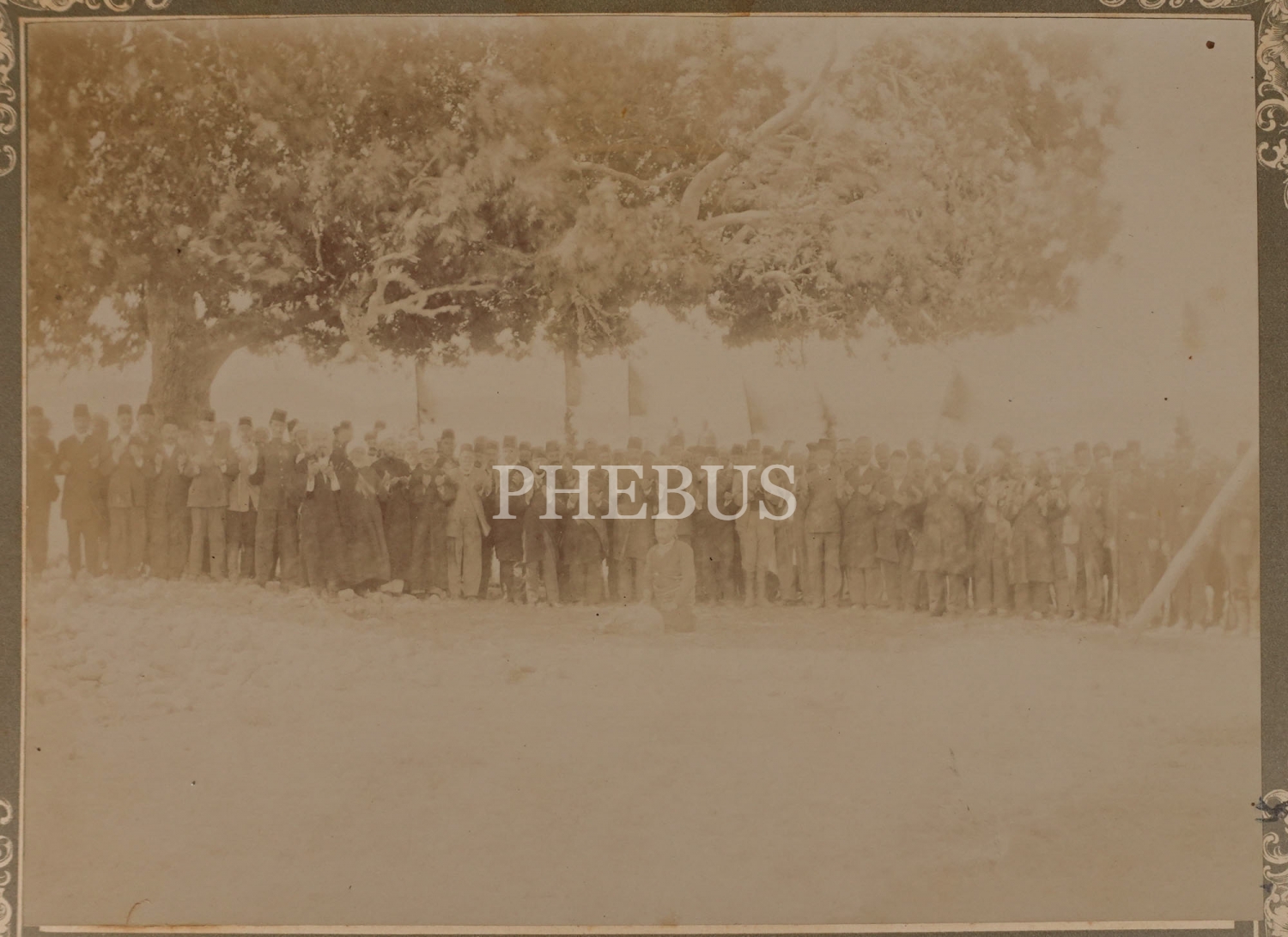 Bir merasimde kurban kesildiği esnada dua eden Osmanlıların görüldüğü fotoğraf, 33x27 cm...