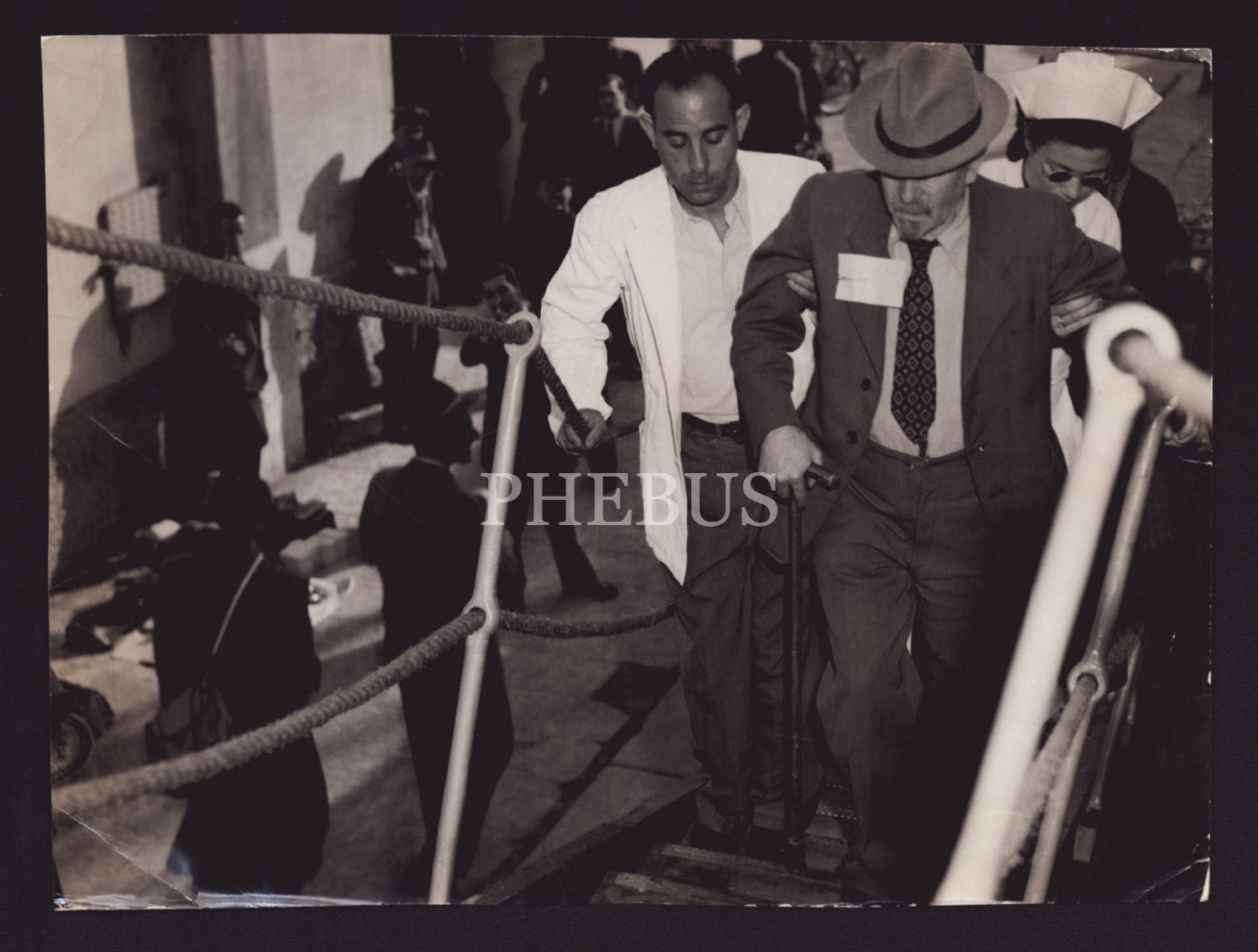 Alman asıllı Yahudi´nin, İsrail´e iltica için gemiye bindiği sırada alınmış fotoğrafı, 22x16 cm...