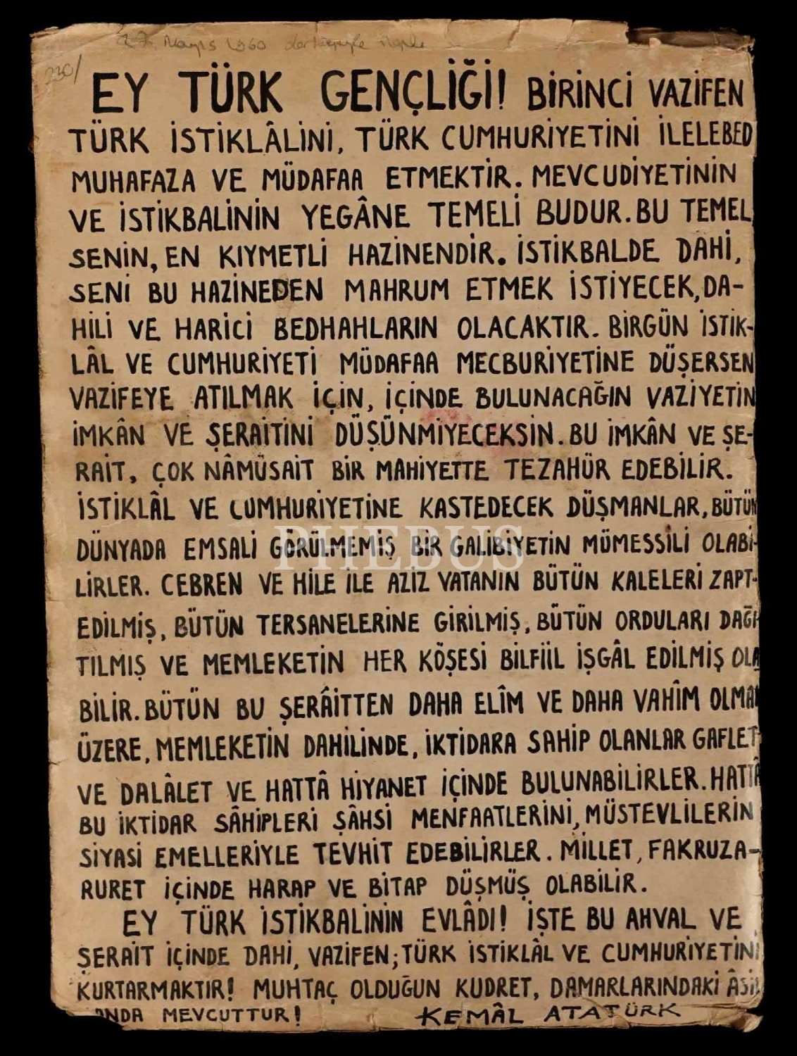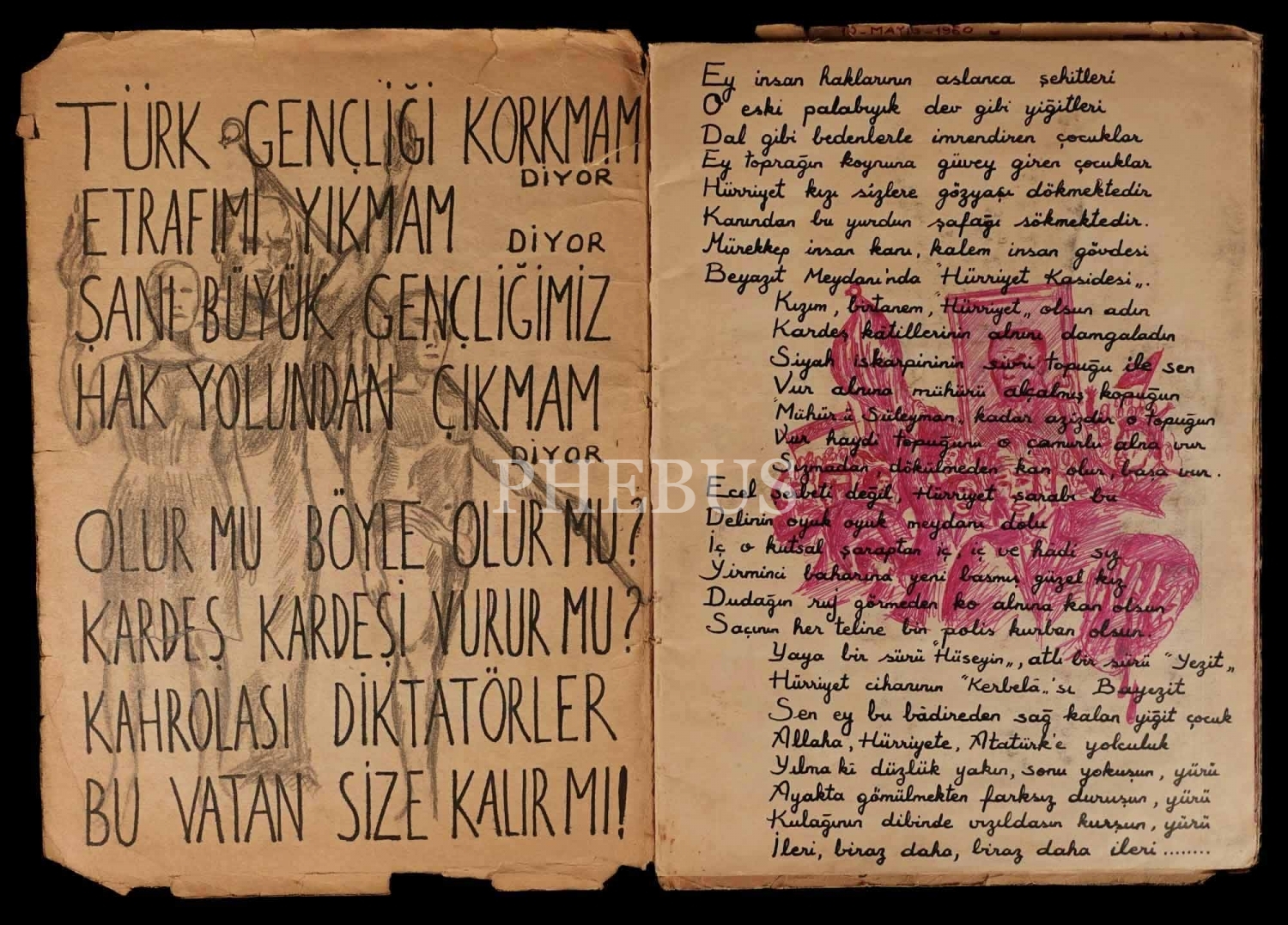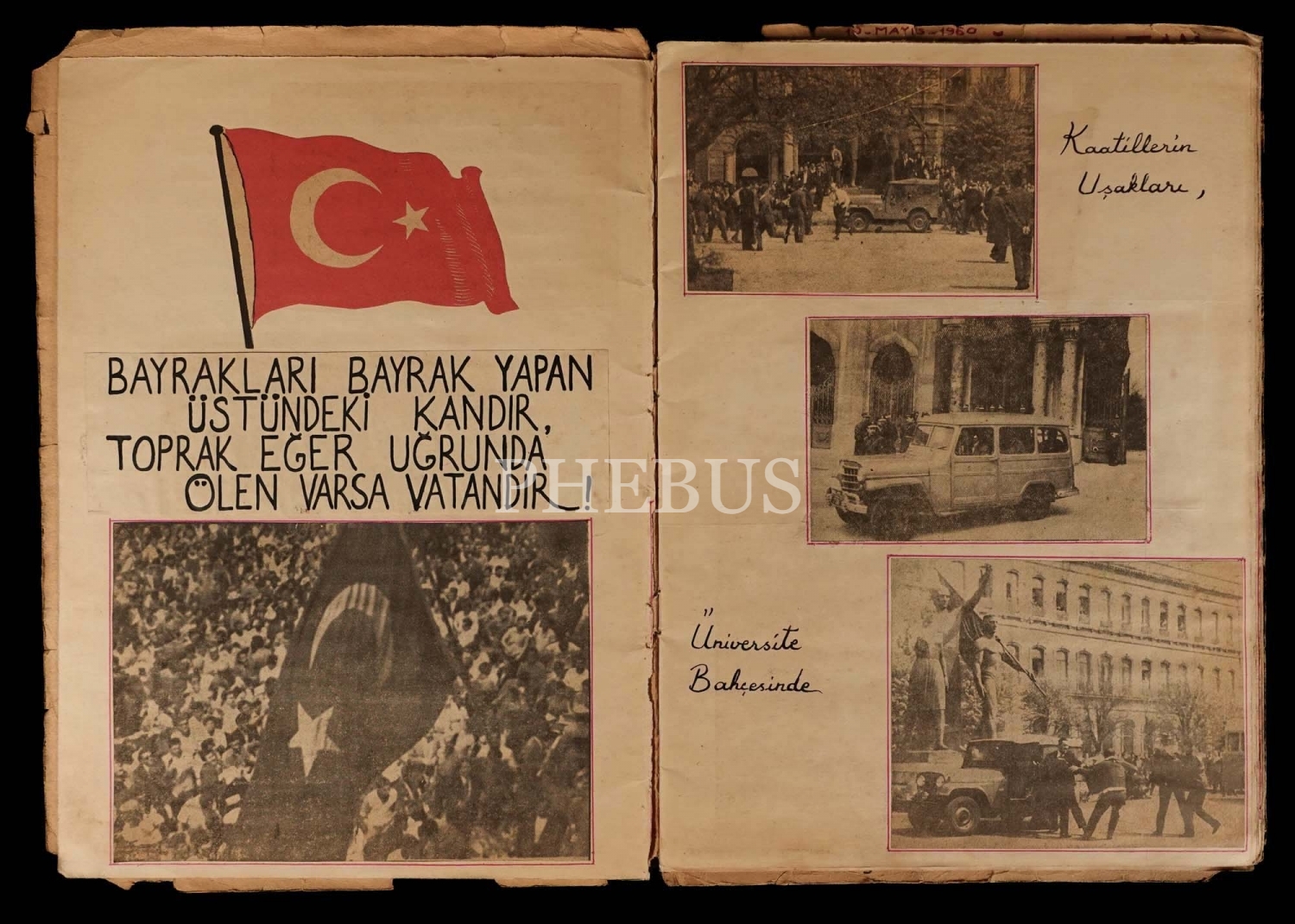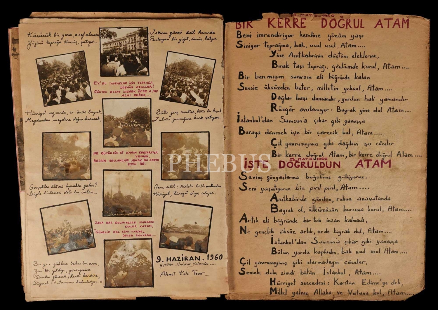 28 Nisan 1960 olaylarını konu alan yazılar ve dönemin gazetelerinde yayımlanan fotoğrafların yer aldığı el yazısı ile hazırlanmış albüm,