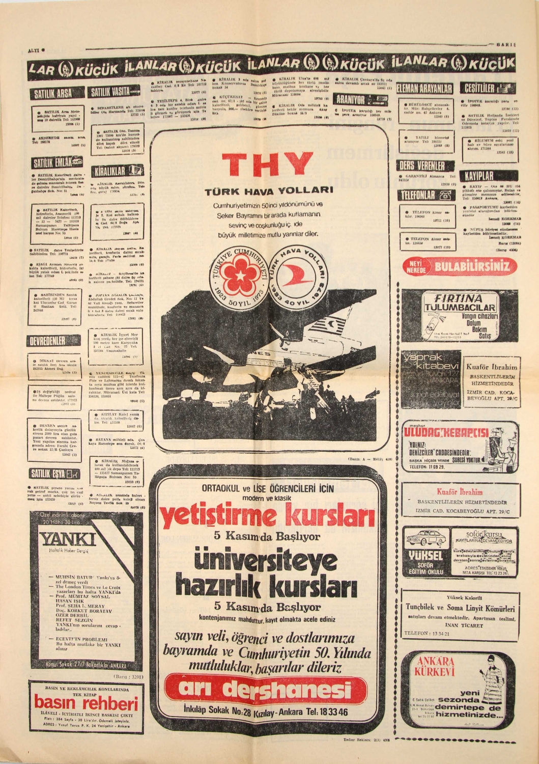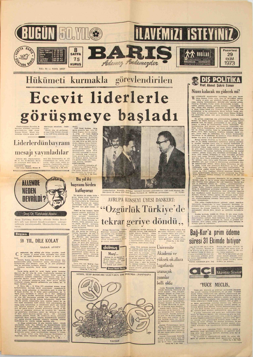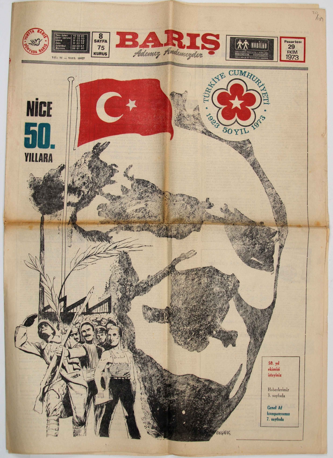 Barış gazetesi, 29 Ekim 1973, Cumhuriyetin ilanının 50. yılına özel kapak, 10 sayfa, 42x60 cm