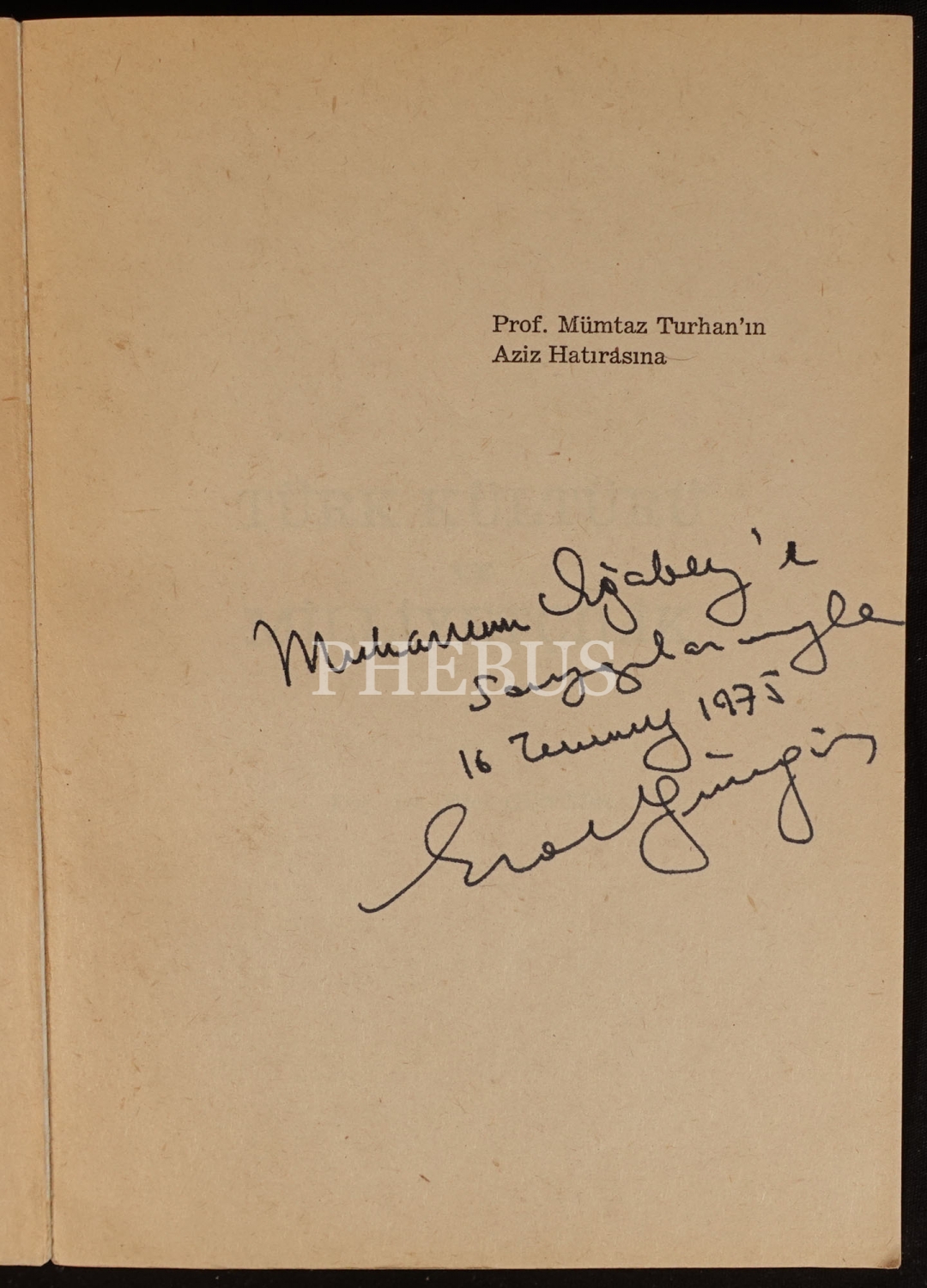 "Muharrem Ağabey´e saygılarımla" ithafıyla 16 Temmuz 1975 tarihinde imzalanmıştır.