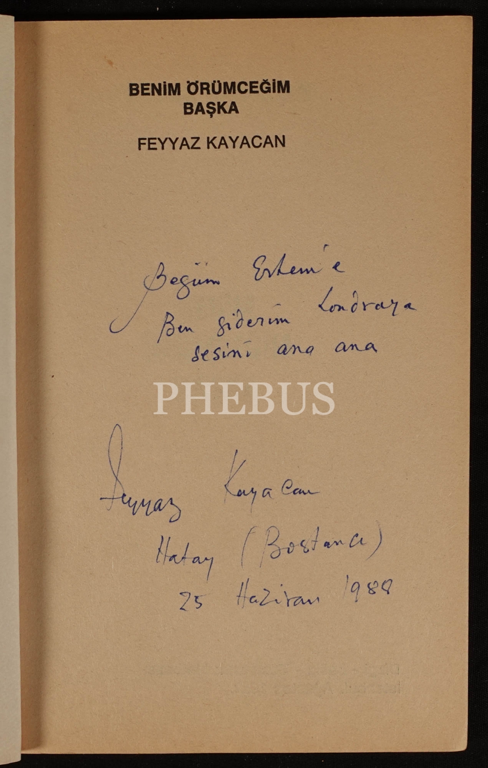 "Begüm Ertem´e Ben giderim Londra´ya sesin ana ana" ithafıyla 25 Haziran 1989 tarihinde imzalanmıştır.