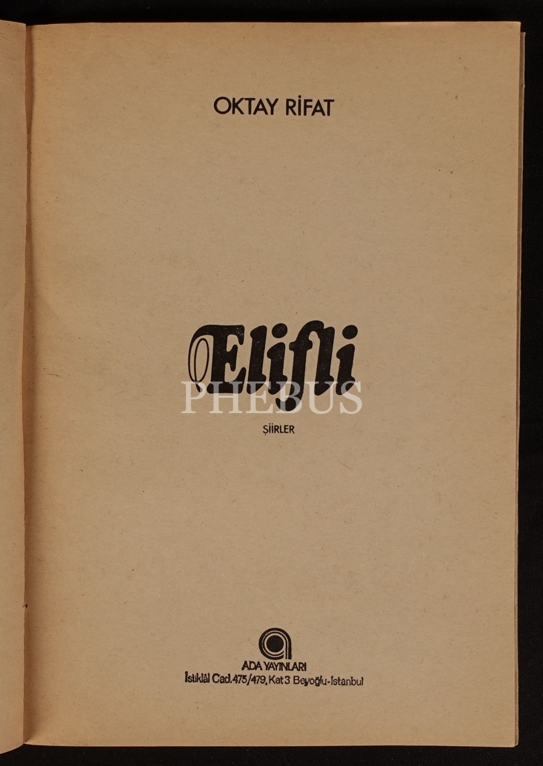 ELİFLİ, Oktay Rifat, 1980, Ada Yayınları, 78 sayfa, 14x20 cm...
