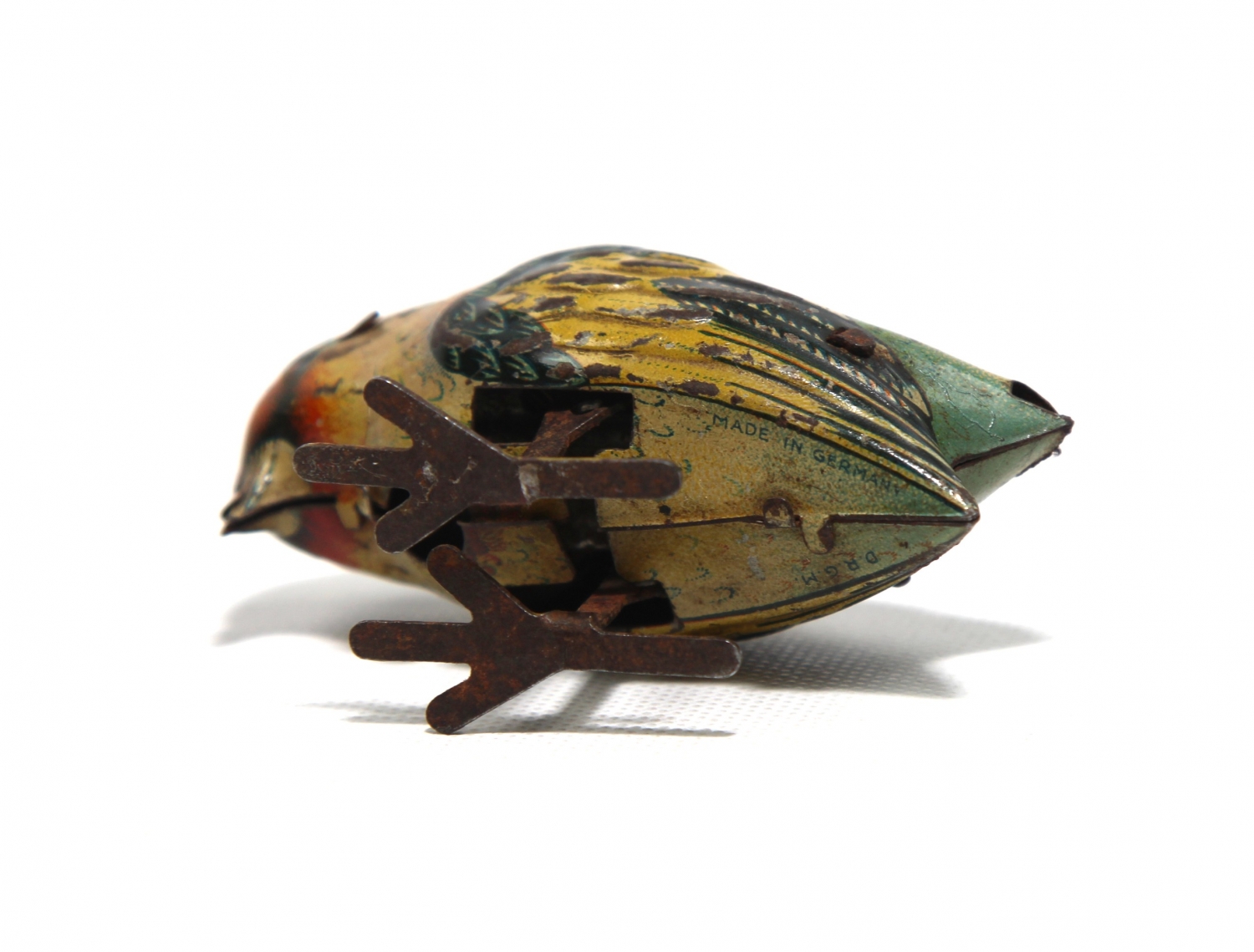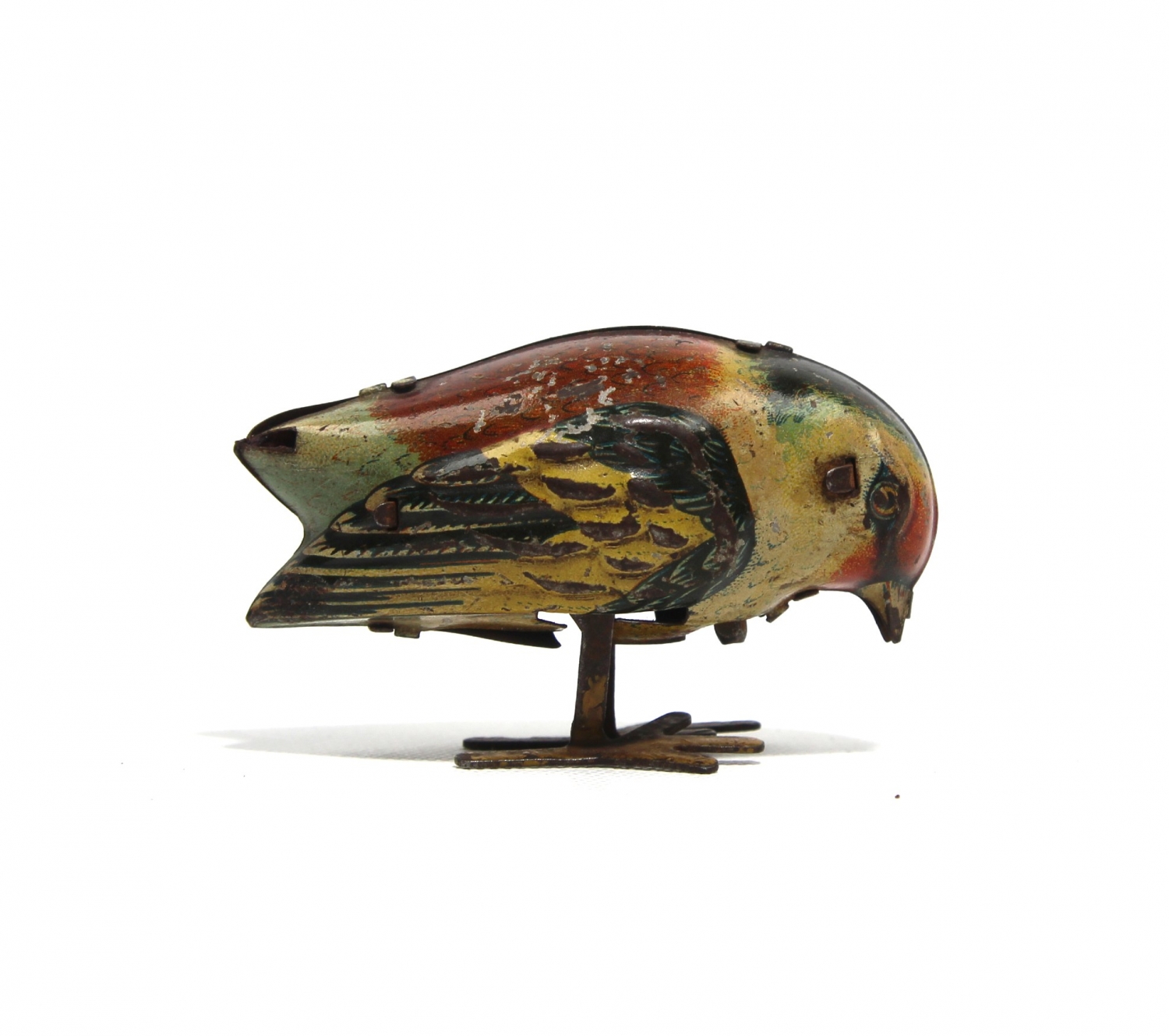 Alman malı teneke kurmalı serçe oyuncak, 3x7x4 cm