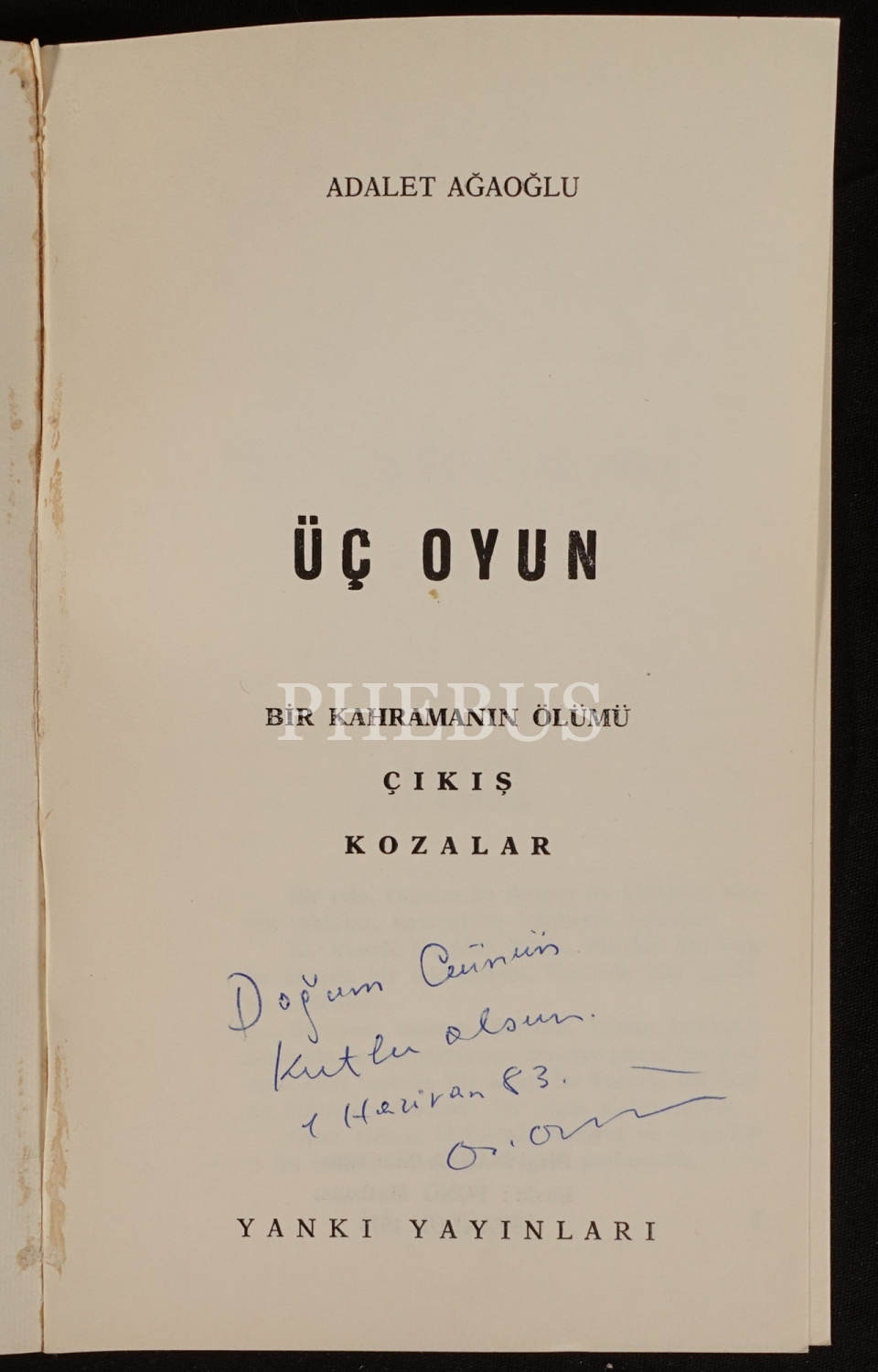 ÜÇ OYUN, Adalet Ağaoğlu, 1973, Yankı Yayınları, 108 sayfa, 11x19 cm...