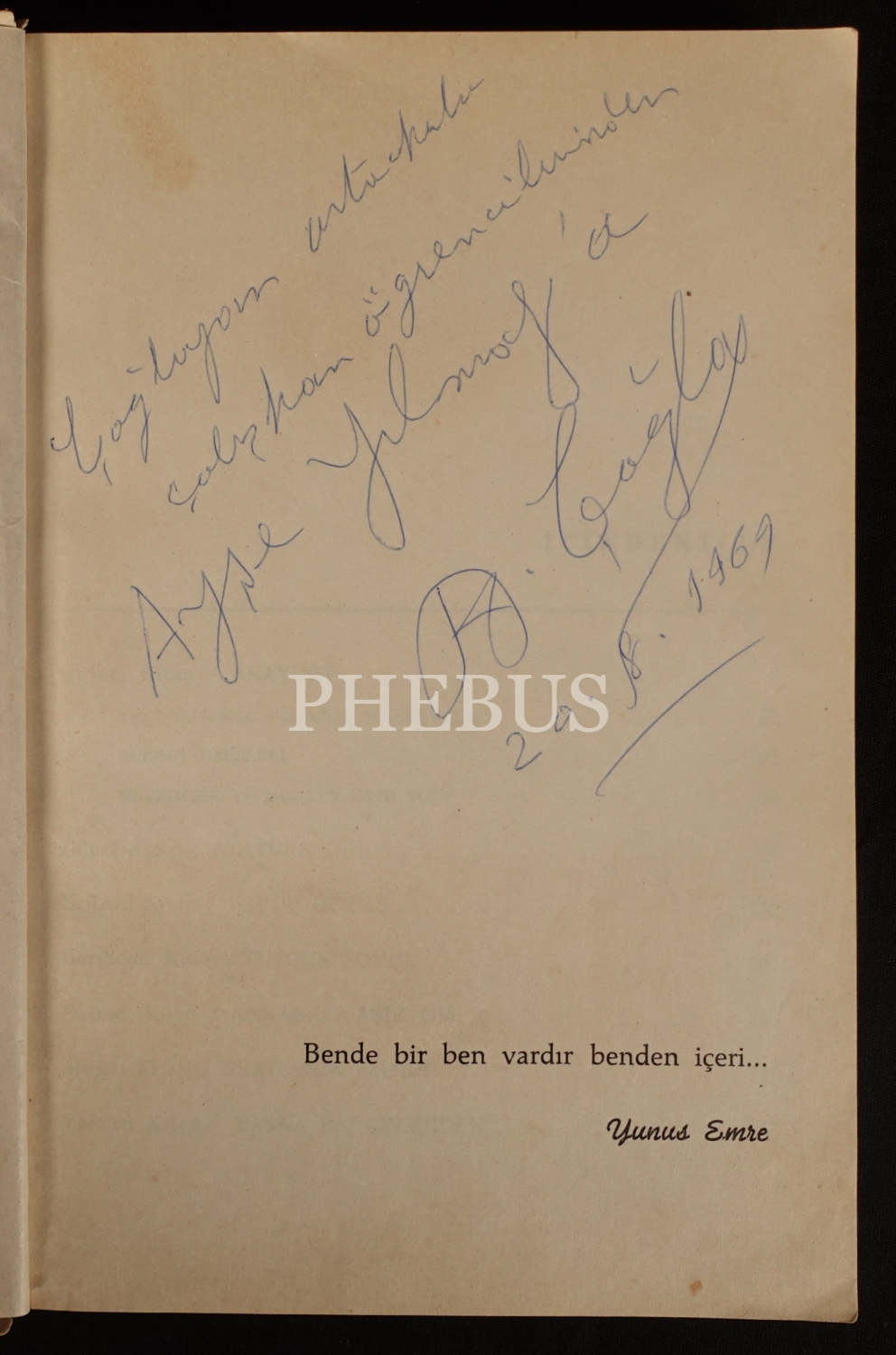 "Çağlayan Ortaokulu çalışkan öğrencilerinden Ayşe Yılmaz´a" ithafıyla 20 Ağustos 1969 tarihinde imzalanmıştır.