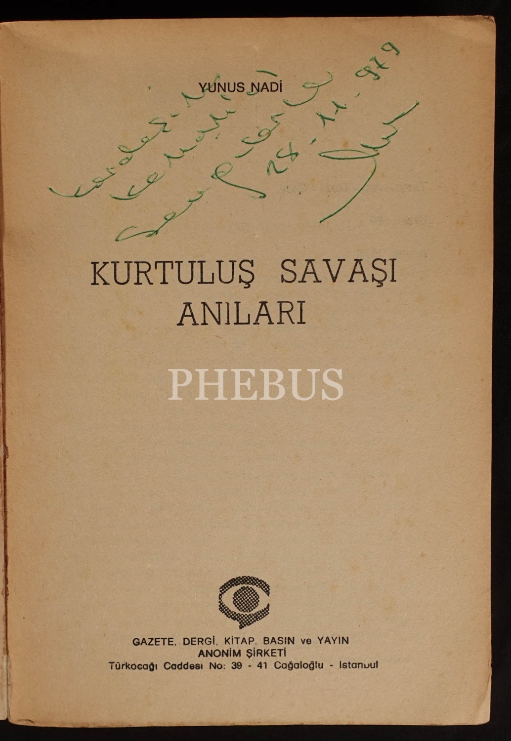 KURTULUŞ SAVAŞI ANILARI, Yunus Nadi, 1978, Erdini Basım ve Yayınevi, 398 sayfa, 14x20 cm...