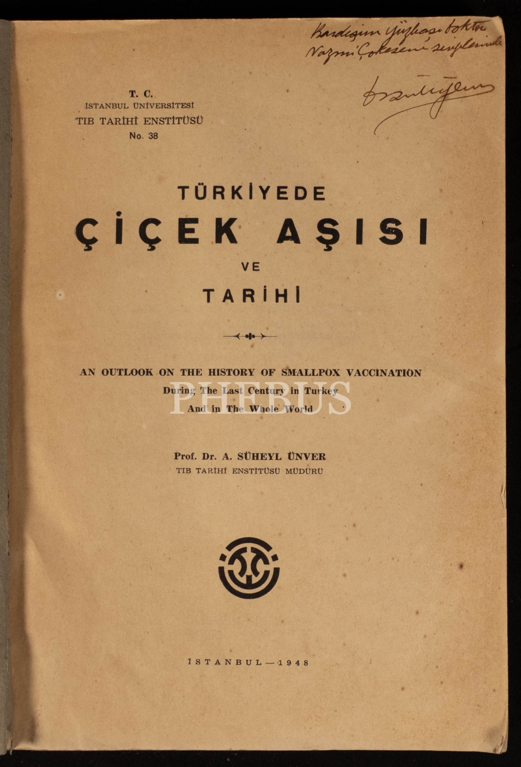 TÜRKİYE´DE ÇİÇEK AŞISI VE TARİHİ, Süheyl Ünver, 1948, İsmail Akgün Matbaası, 300 sayfa, 17x24 cm...