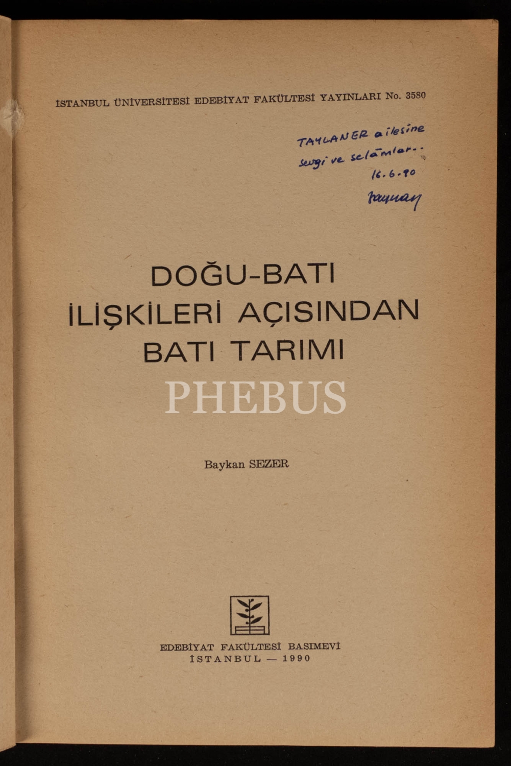 DOĞU BATI İLİŞKİLERİ AÇISINDAN BATI TARIMI, Baykan Sezer, 1990, Edebiyat Fakültesi Basımevi, 138 sayfa, 16x23 cm...