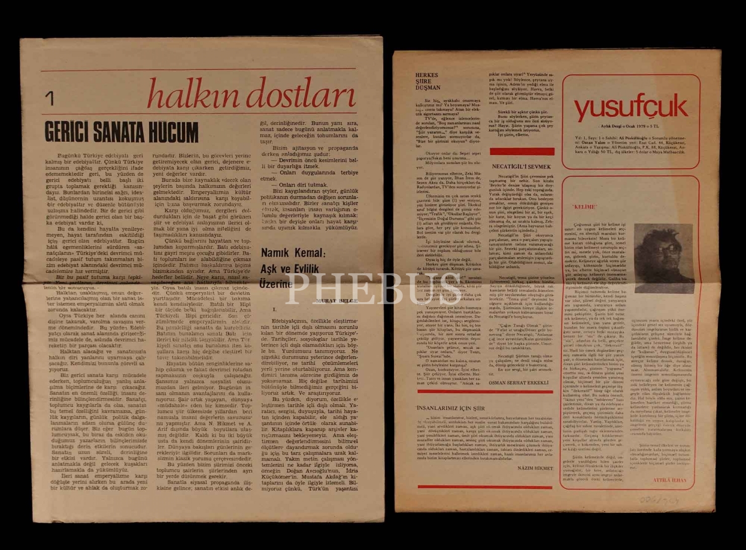 HALKIN DOSTLARI ve YUSUFÇUK dergilerinin ilk sayılarının, "Edebiyat Ürünleri Dergisi nar: dokuz"un eki olarak yayımlanan tıpkıbasımları, 23x32 cm (Yusufçuk), 25x34 cm (Halkın Dostları)...