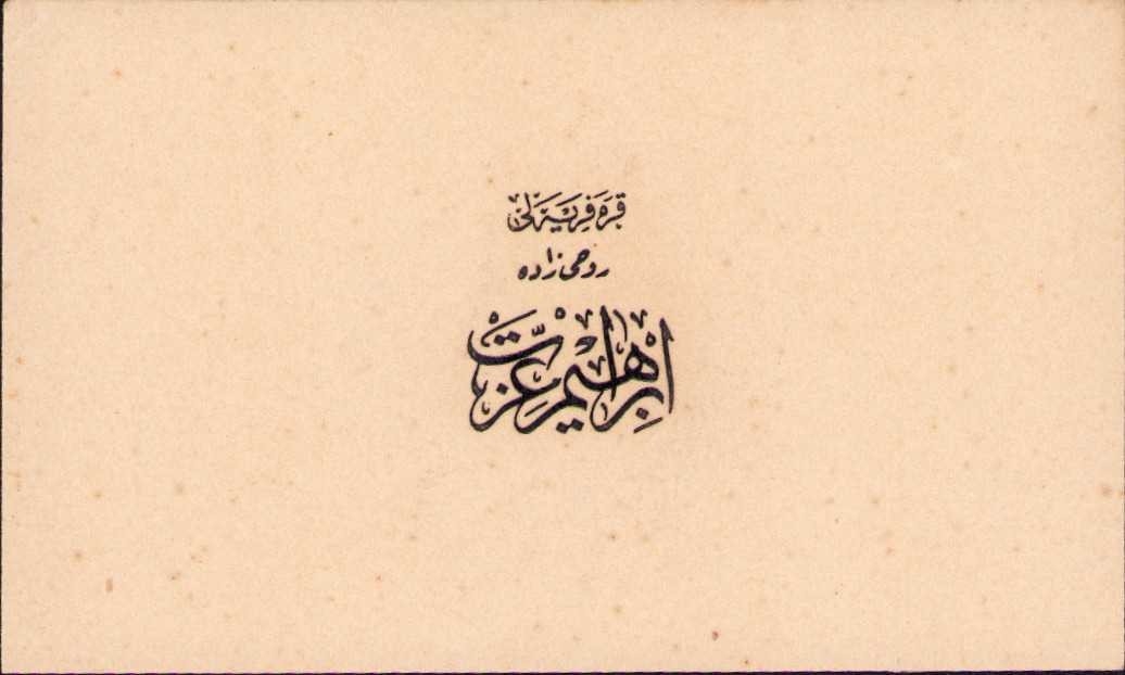 Osmanlıca Kara Kariyeli Ruhizade İbrahim İzzet kartvizit, 9x5 cm