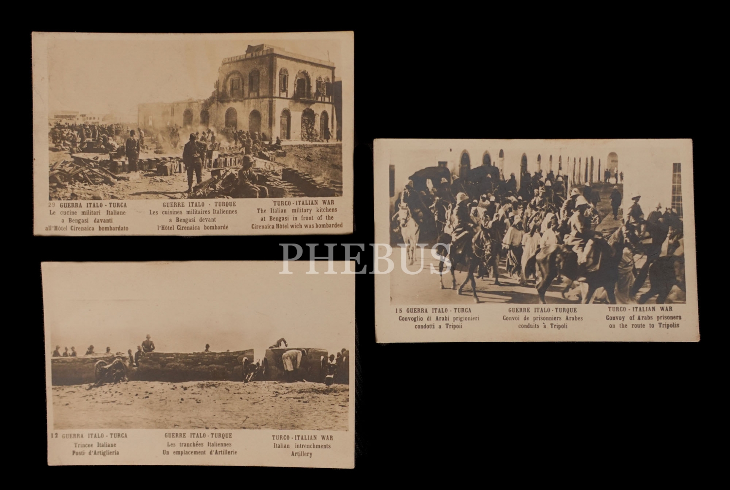 Traplusgarp Savaşı´ndan görüntüler içeren 3 adet kartpostal, 14x9 cm...