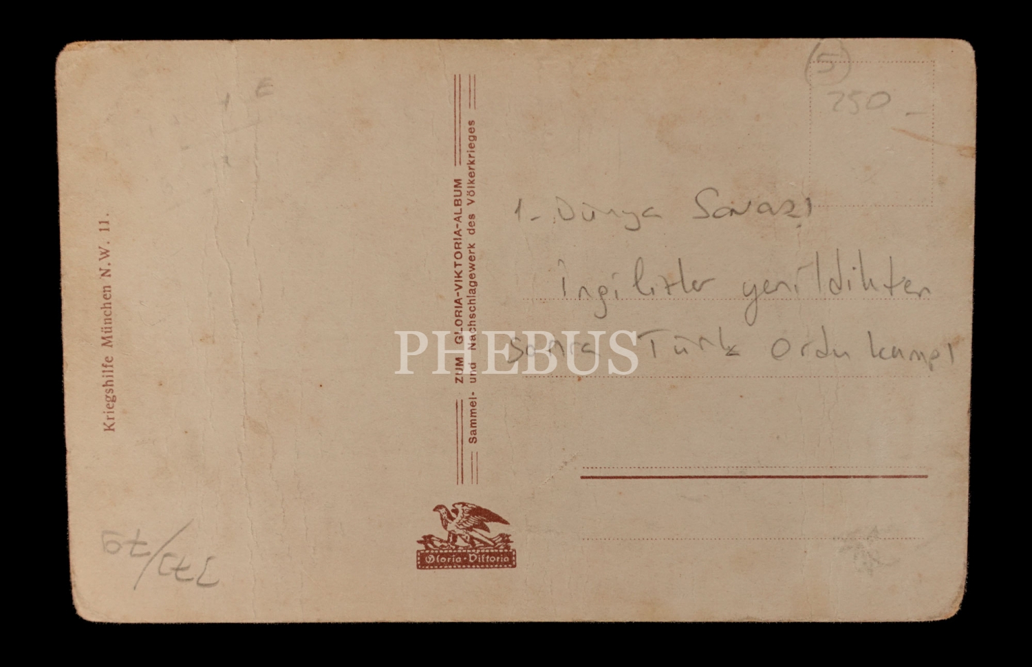 Cihan Harbi´nde İngiliz kuvvetlerini bozguna uğratan Türk askerlerinin kampı, ed.: Kriegshilfe München N.W, 14x9 cm...