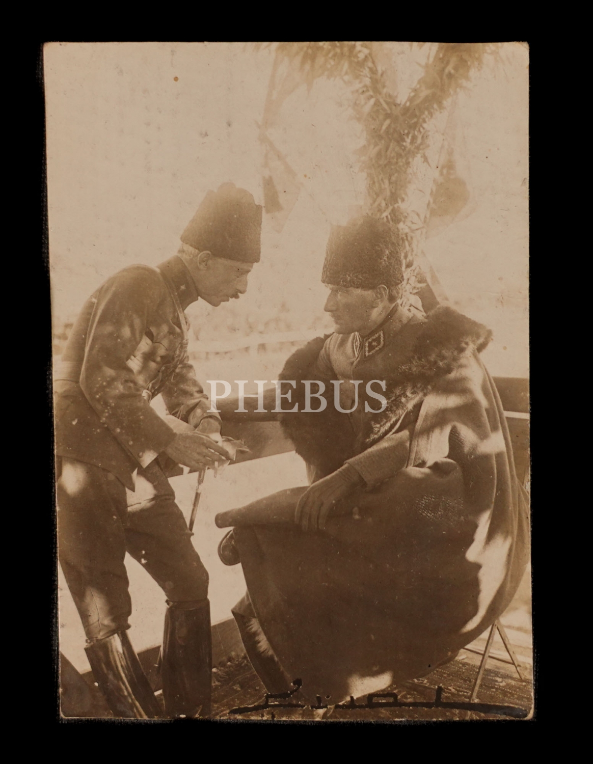 Mustafa Kemal Atatürk ve Refet Bele´nin, Milli Mücadele yıllarında Ankara Hipodrom´da alınmış bir fotoğrafı, 1921, 7x11 cm...