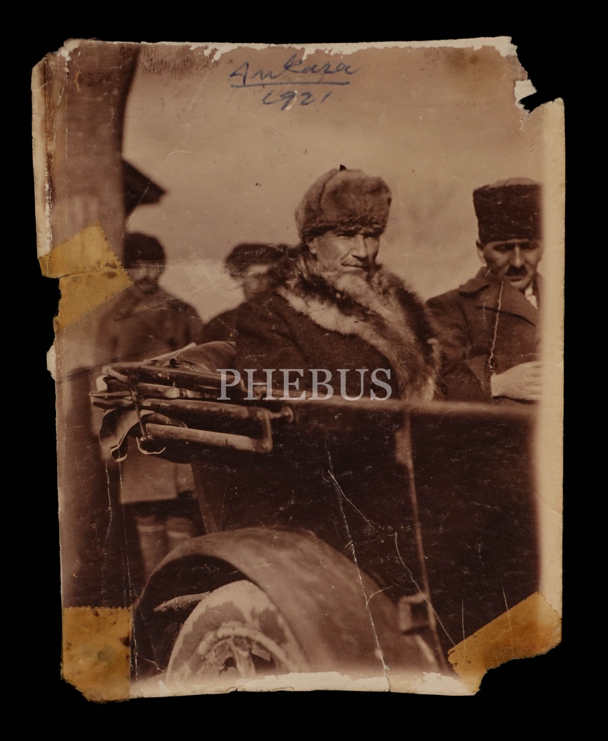 Mustafa Kemal Atatürk ve Salih Bozok´un cepheden dönerken Ankara İstasyonu´nda otomobilde alınmış fotoğrafı, 9x11 cm..