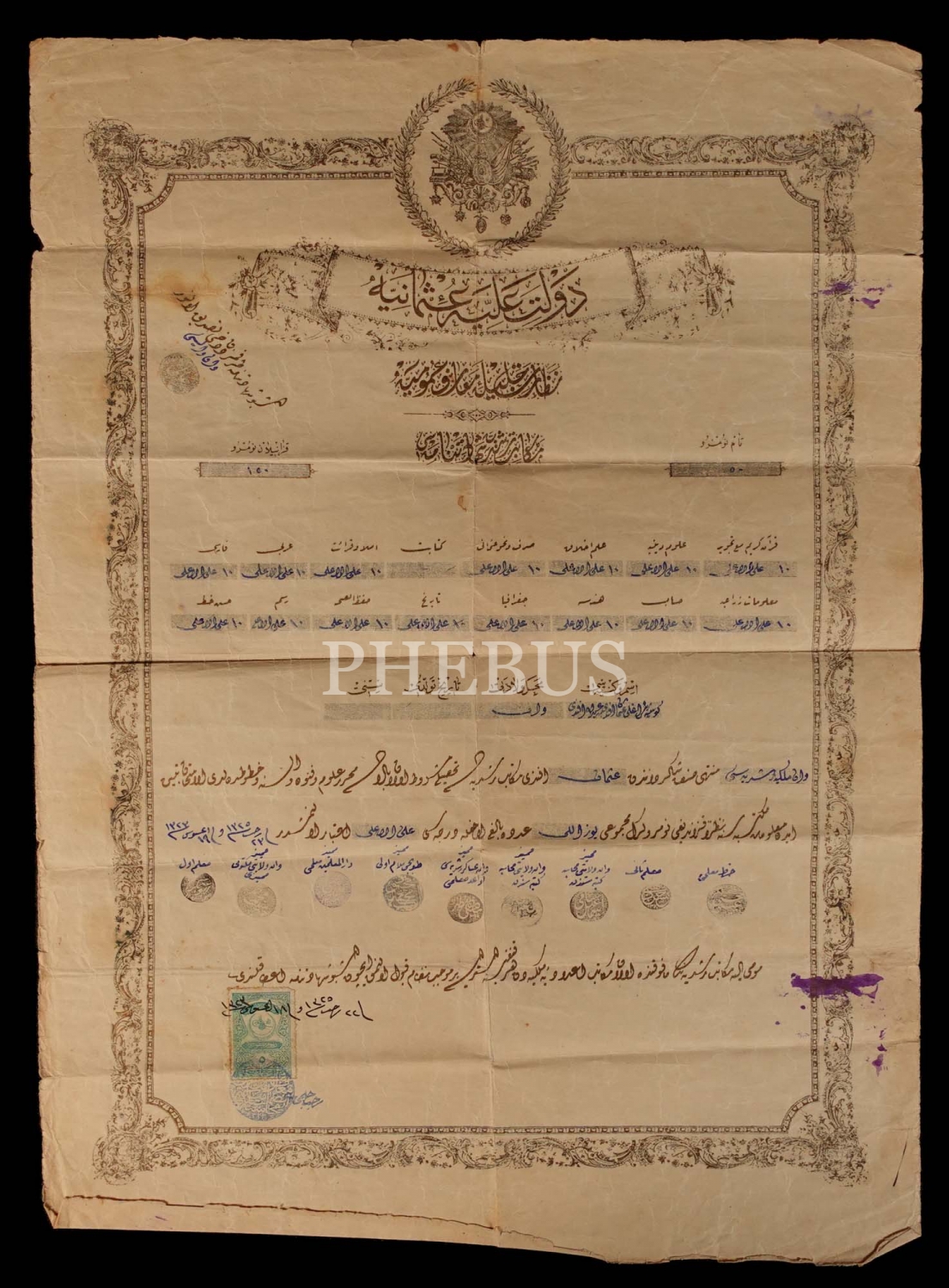 Van Mülkiye-i Rüşdiyesi´nden mezun olan Osman Efendi´nin diploması, 1325, 36x49 cm....