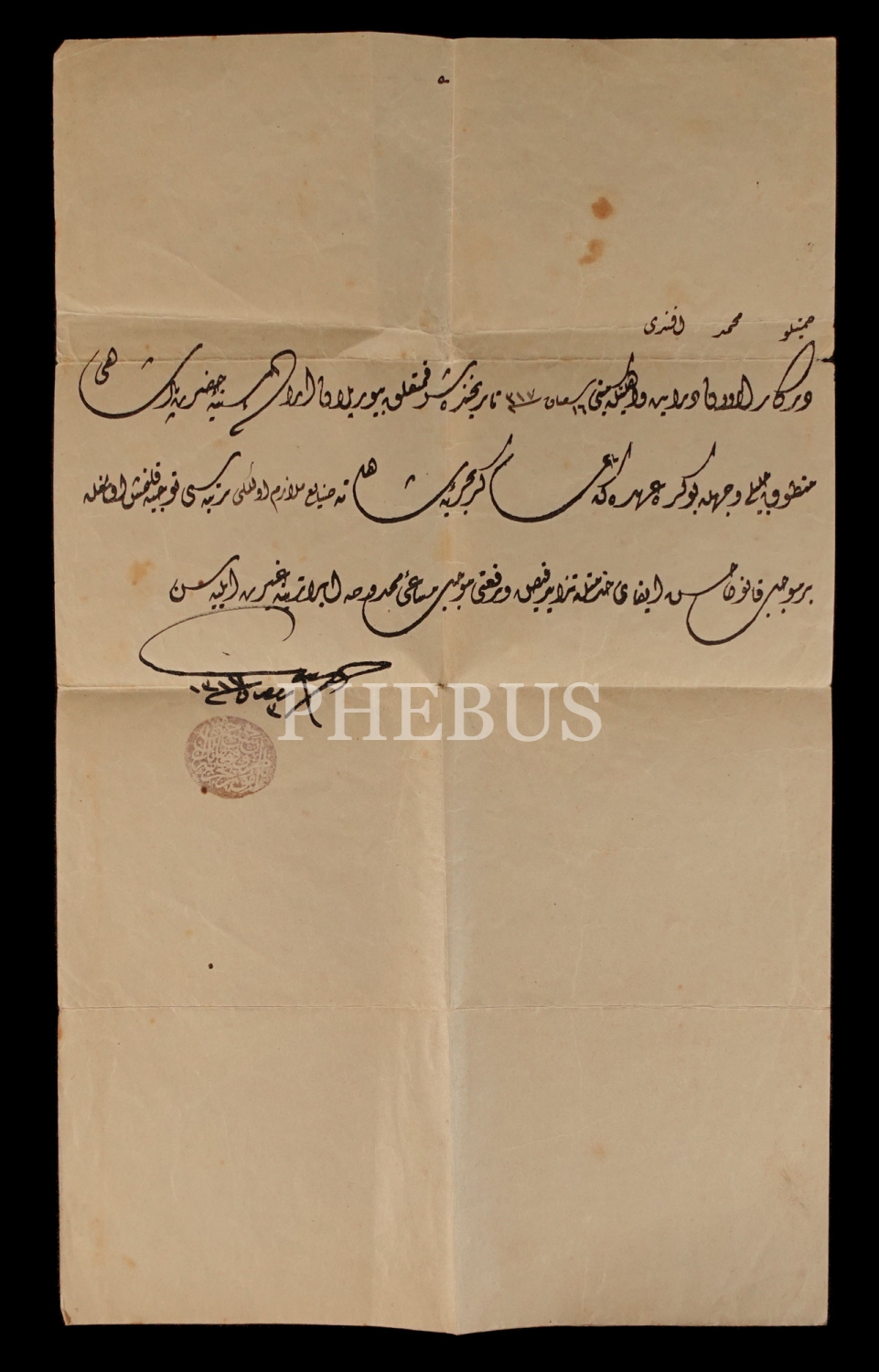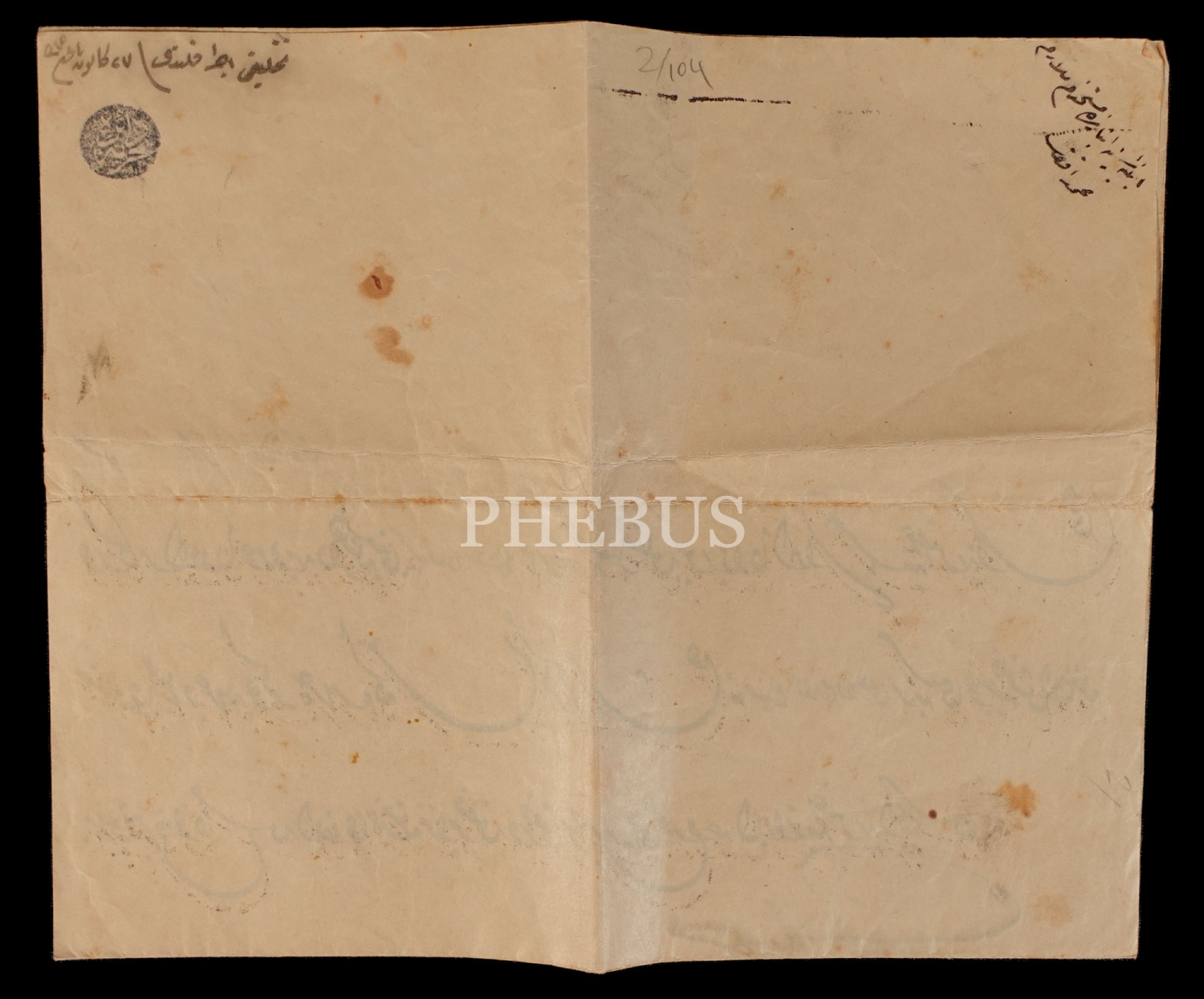 Mehmed Efendi´nin Asakir-i Bahriye-i Şahane sanayi mülazım-ı evvelliği rütbesine tevcih edildiğine dair Bahriye Nazırı Hüseyin Hüsnü Paşa´nın mührünü taşıyan evrak, 2 Ramazan 1317, 25x41 cm...