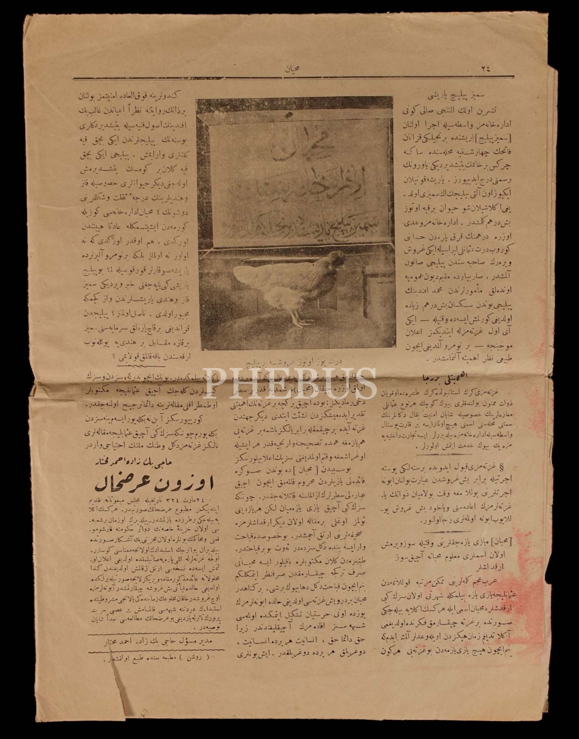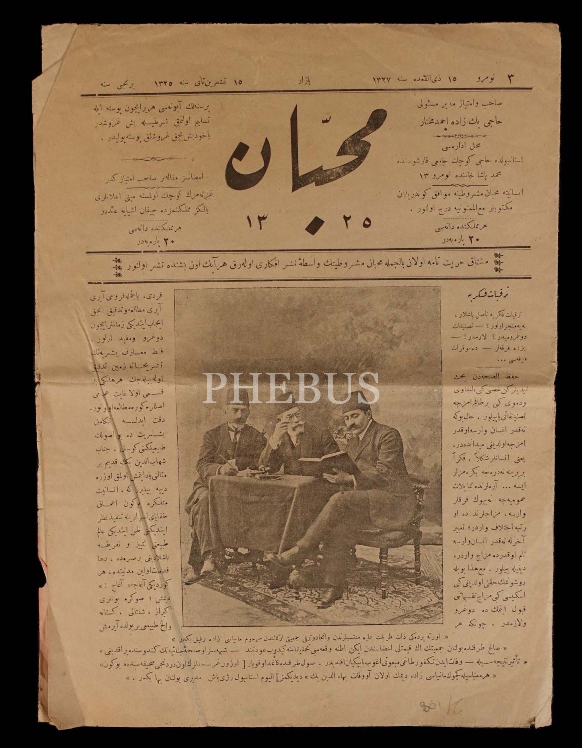 Manyasizade Refik Bey´in fotoğrafını kapağına taşıyan MUHİBBAN gazetesinin 15 Teşrinisani 1325 tarihli nüshası, 8 sayfa, 25x34 cm...