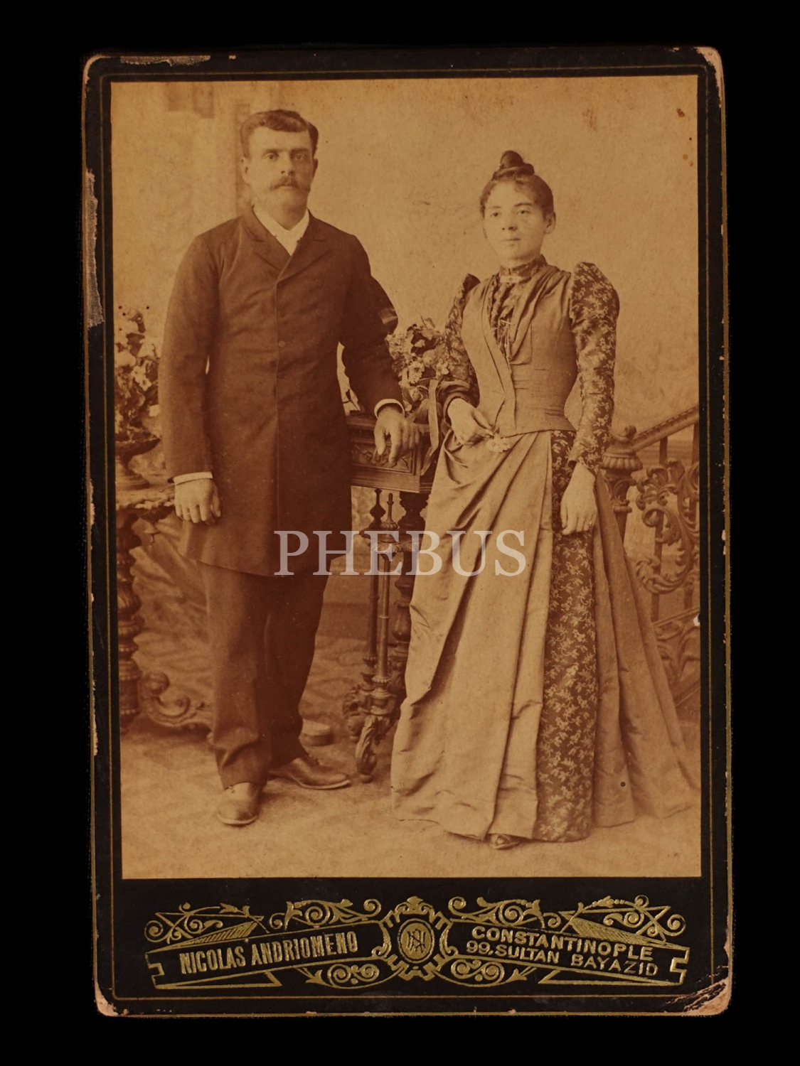 Modern giyimli çiftin stüdyo hatıra fotoğrafı, Nicolas Andriomenos Fotoğrafhanesi, 11x16 cm...