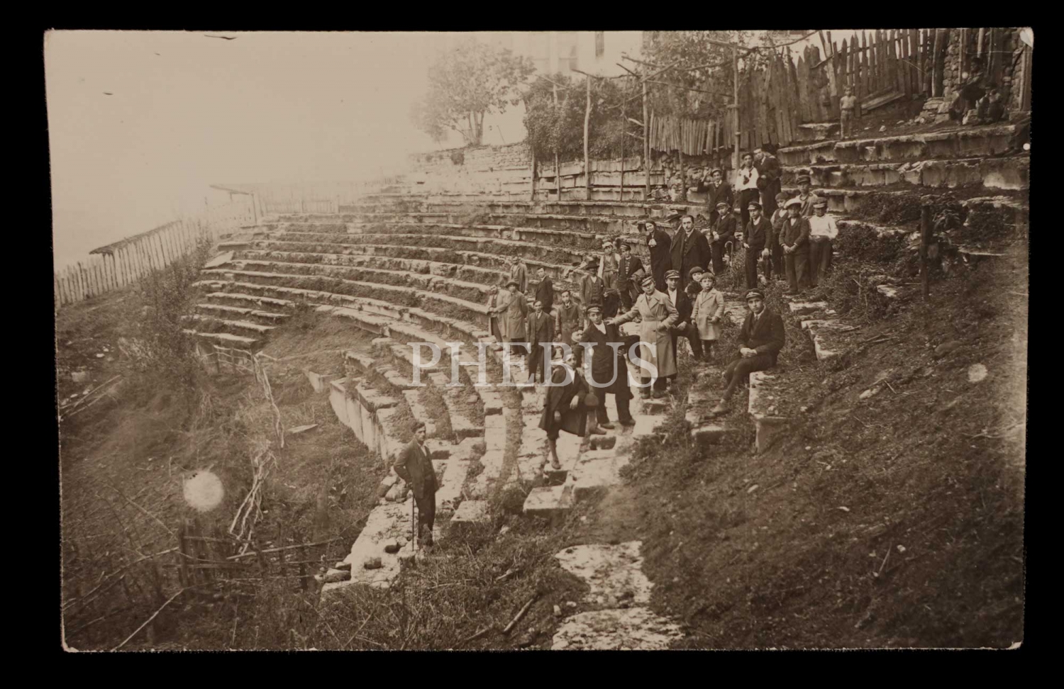 Prusias ad Hypium Antik Kenti´nde bulunan tiyatroda poz veren öğrenciler ve öğretmenleri, Düzce, 14x9 cm...