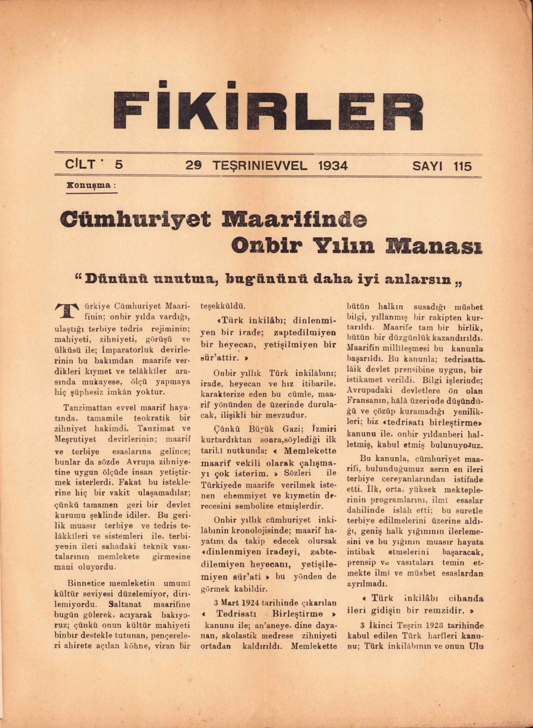 İkirler Muallim Kültür, 1934, 16 sayfa, 24x30 cm